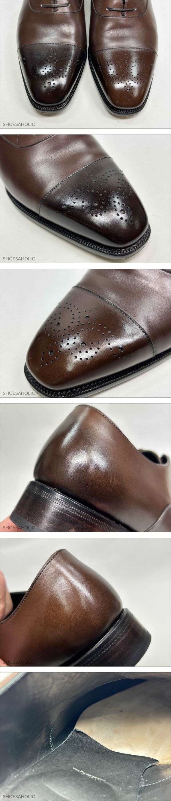 | 商品説明 | ●ご試着について:最下段の<特定商取引法>に記載のある東京都国立市の実店舗にてご試着可能です。 ●出品ID:452 ●管理コード:7210 ●ブランド:TLB ●商品詳細:メダリオンキャップトゥ ●サイズ・ワイズ :5 ●右足のソールの実寸: 全長: 27.6cm 最大幅: 9.5cm ●カラー:ダークブラウン ●素材:カーフ ●付属品 ( )箱 ( )シューツリー ( )その他( ) *上記のシューツリーに( 〇 )の記載の無い商品は撮影用のツリーのため付属しません。 *箱はヨレ、キレ、スレ、シミ等がある物もありますので、おまけとお考え下さい。 ●全体的な状態:B ( A:試着程度 B:使用数回 C:極上 D:美品 E:中古 F:一部訳あり) ●アッパーの状態 ( ) 試着程度品ですが試着シワ・保管スレキズがあります。 ( 〇 ) スレ、キズ、履きシワがあります。 ( 〇 ) 色ムラ、シミがあります。 ●ライニングの状態 ( ) 試着程度品ですが保管スレキズ・保管シミがあります。 ( 〇 )靴の内側に履きシミがあります。 ( 〇 )靴の内側にスレがあります。 ●ソールの状態 ( )試着程度品ですが試着スレキズ・保管シミがあります。 ( )ハーフラバーが貼ってあります。 ( )トゥはスティール・ラバー・レザーが付いています。 ( )ソールは交換されています。 ( )ヒールは交換されています。 ●特記事項 ・ソックシートにめくれがあります。 ・右足のみキャップとヒールにアンティークフィニッシュがされており、色が濃い目です。 ーーーーーーーーーーーー<お知らせ>ーーーーーーーーーーーーー ●お問い合わせについて:質問フォーム またはお電話でお願い致します。 ●実店舗について:店名:シューホリック 所在地:東京都国立市東2-6-6 フジノビル2階 ●営業日について:公式サイト上トップページの「インフォメーション」にてご確認下さい。 ●発送について:定休日・臨時休業日・土日祝日・休暇中 以外の営業日に行います。 ●送料について:ヤマト宅急便 元払い(日時間指定・営業所止め可)の全国一律1000円(北海道、沖縄は+500円) ●入札について:落札後24時間以内に必ず連絡の取れる方、落札後3日以内に決済可能な方のみご入札下さい。 ●お値引きについて:承っておりません。 ●返品について:商品の不備や記載ミス以外、気に入らなかった、サイズが合わなかったなどお客様都合での返品は受け付けていません。 ●評価について:評価は基本的に当ストアよりは差し上げておりません、ご希望の場合お知らせ下さい。 ●同時販売について:実店舗や公式サイトでも併売をしているため、以外で完売後に上で掲載の取り下げが間に合わない場合があり、ご落札後のキャンセルをさせて頂く場合があります。 ●特定商取引法に関する表記● ・販売業者 株式会社 シューホリック ・事業内容 高級靴・高級鞄を専門に販売、輸入および買取業務。 ・運営統括責任者 井上 祐太 ・古物営業許可証 株式会社 シューホリック 東京公安委員会 308891606450 ・郵便番号 〒186-0002 ・住所 東京都国立市東2-6-6 フジノビル2階 ・電話番号:042-508-3596 会社携帯電話:070-4100-5694 ・お支払い方法 かんたん決済 ・お支払い期日 ご落札後 3日以内 .26 |