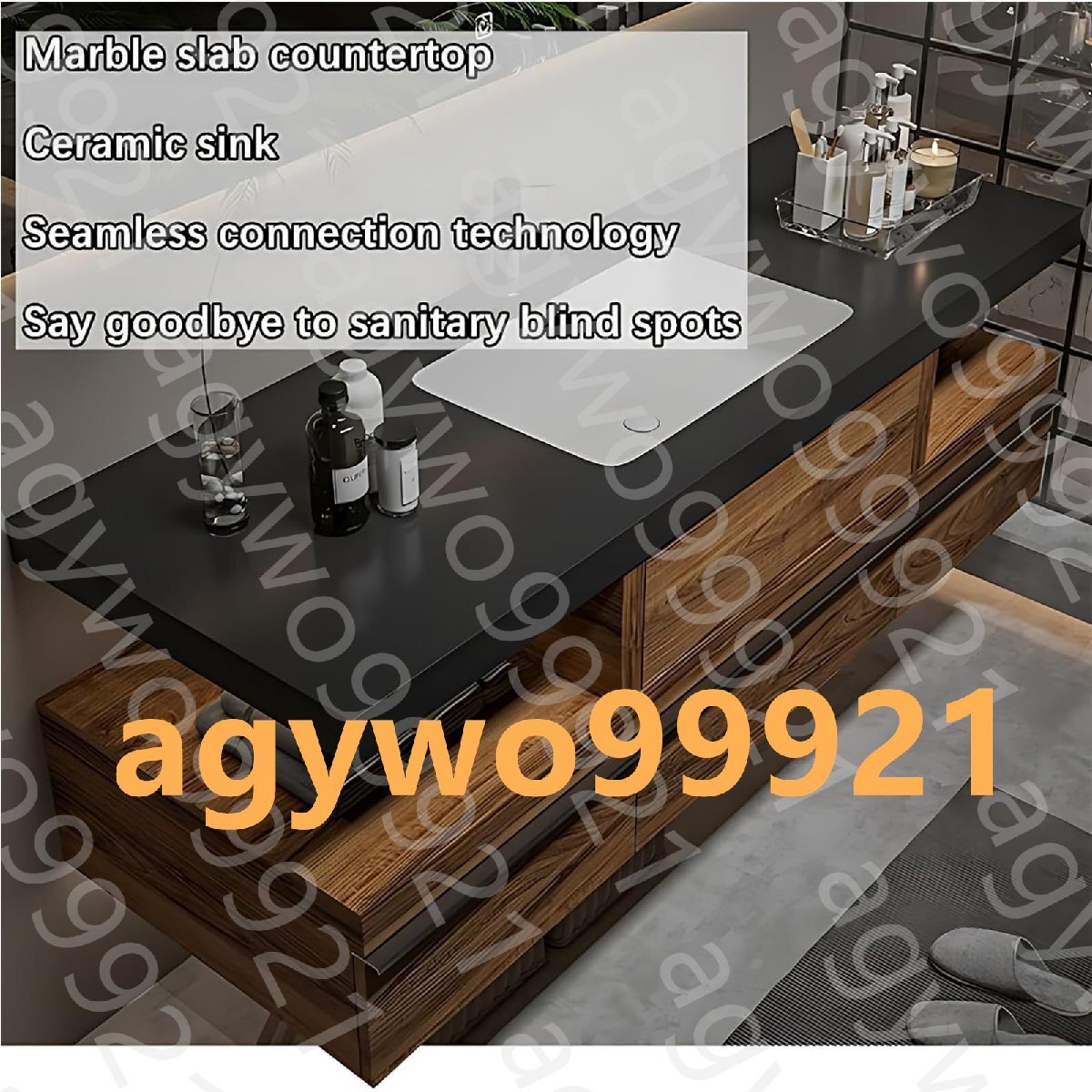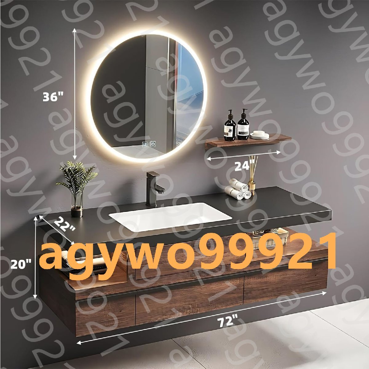 シンク付きバスルームの洗面化粧台 - モダンなシングルシンクのバスルームの洗面化粧台、壁に取り付けられた無垢材のバスルームの洗面化粧台、収納がたっぷりのエレガントなフローティング洗面化粧台 A