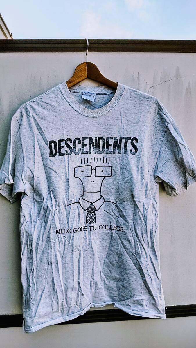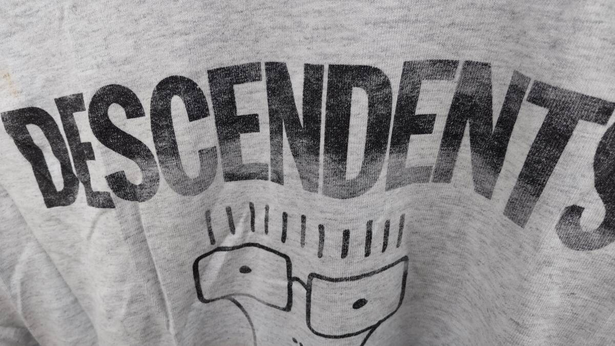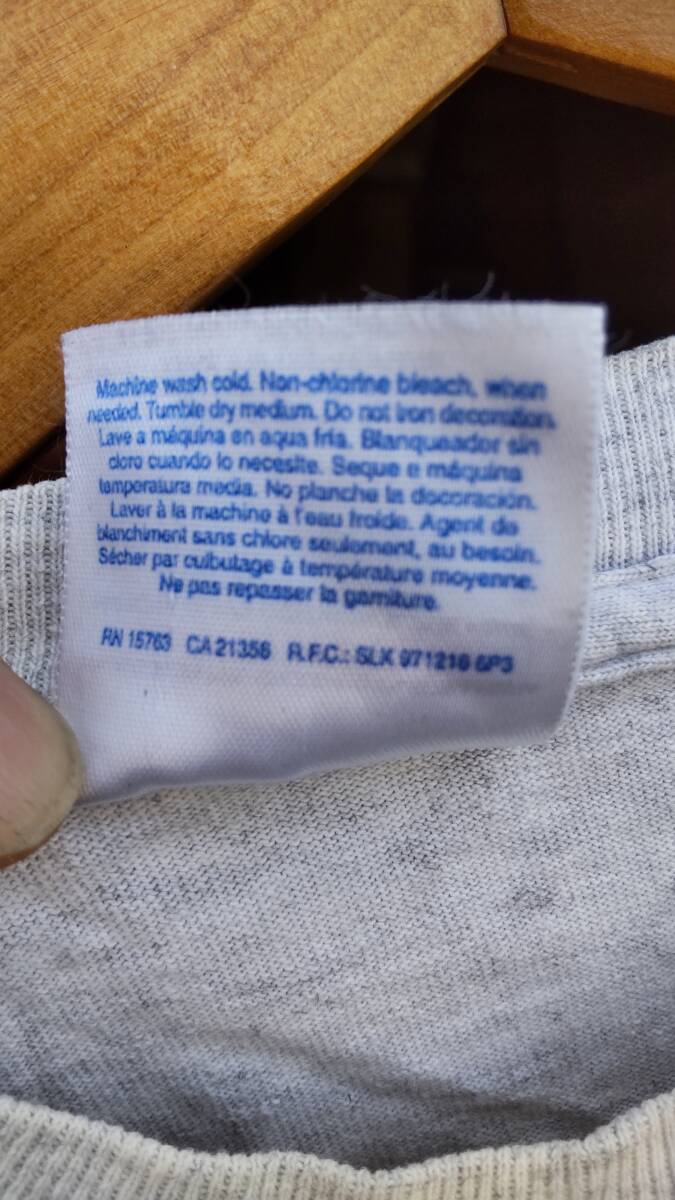 20年程前にロサンゼルスのダウンタウンにあるレコード屋にて購入したものになります。10年以上は着用せずにクローゼットにしまっていました。サイズは表記でアダルトM実寸肩幅約51センチ、身幅約54センチ、着丈約67センチになります。大きめめなので普段Lサイズ前後を着る方にお勧めします。着用感はそれなりに有りプリントが薄くなっている部分が有り一部染みや黄ばみが有ります。このようなビンテージ品ですので古着初心者や神経質な方にお勧めしません。これらを判断のうえご検討ください。