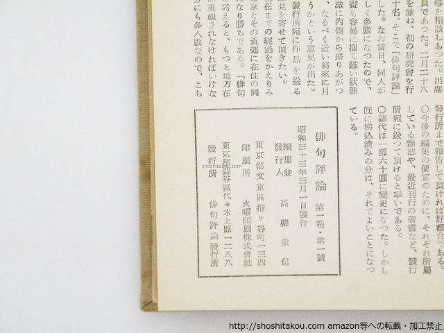 (雑誌)俳句評論 創刊号-125号内94冊 / 高柳重信 編発行 ◯当店在庫から「高柳重信」の本を探す| ★ 発送方法 (送料無料) ・日本郵便のゆうパケット・レターパックライト・レターパックプラス・ゆうパックの中から荷姿の大きさに適した方法で発送します。(発送方法や到着日時はご指定いただけません。) ・上記発送方法はすべて追跡番号付き・土日配送有・速達扱いです。ゆうメールや定形外は発送に使用いたしません。 ・ゆうパケット・レターパックライトは郵便受けにお届け、レターパックプラス・ゆうパックは配達員対面受取です。防水梱包します。 ★ 必ずお読みください ・代金決済後の次の火木土に発送します。 ・ストア出品です。ご注文時に必要事項のご記入・決済いただいた後は、やり取り不要です。商品の到着をお待ち下さい。 ・肉筆物・美術作品は真作保証いたします。 ・商品のレファレンス(調べ物)サービスは行っておりません。また当店商品以外の無料鑑定は行っておりません。 |