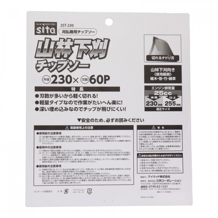 | サイズ | 外径230×内径25.4×刃厚2.0mm 個装サイズ:28×24.5×1.1cm |