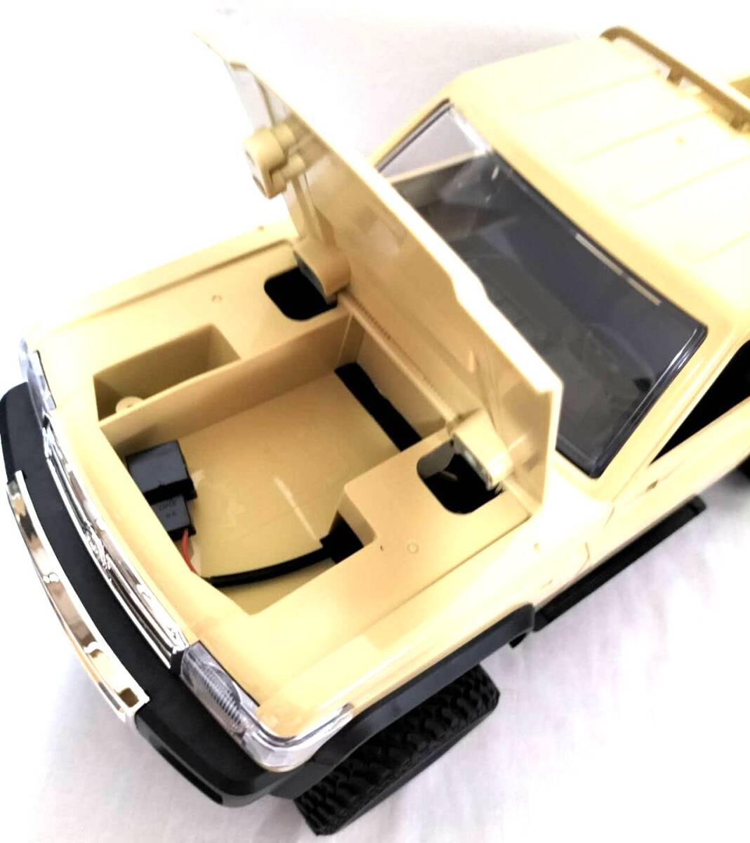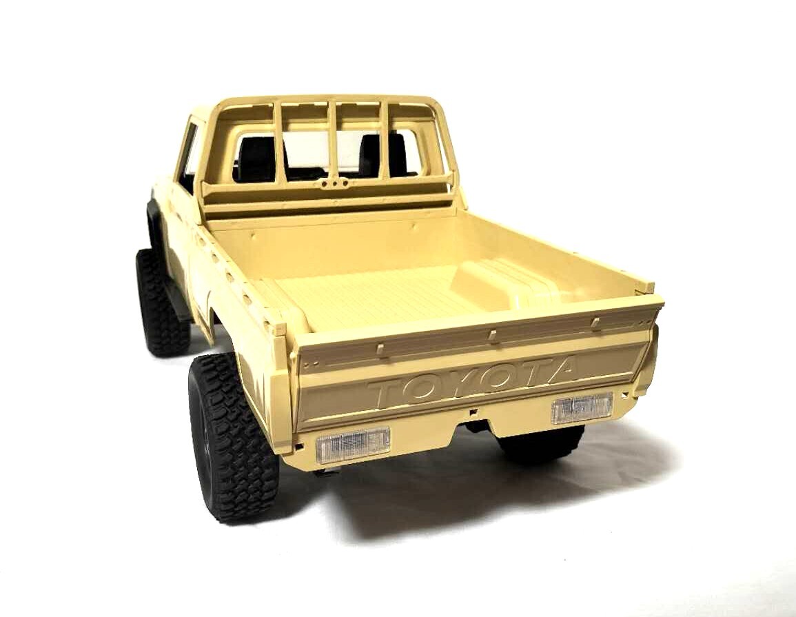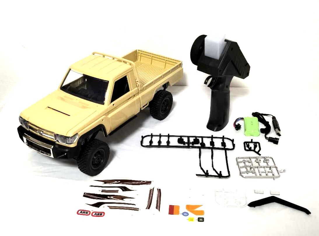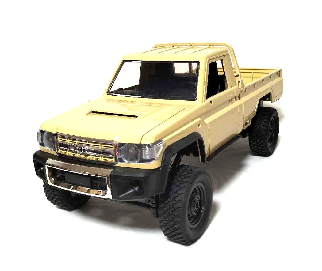 ●シングルキャブの79ランクルを忠実に再現した迫力満点のボディ●四輪駆動で足回りは前後リジッドアクスル、フロントはコイルショック、リアはリーフサスペンションで支持。●ブレーキ機能搭載(プロポを前進から直接後退にするとブレーキが効きます)●リアルさをさらにアップさせるアクセサリーとデカール付き・スケール:1/12・全長:358mm・全幅:152mm(タイヤ含む)・ホイールベース:216mm・タイヤ径:61mm・モーターサイズ:280サイズ・バッテリー:7.4V 500mAhプロポ用乾電池(単三x2)は別途ご用意ください。