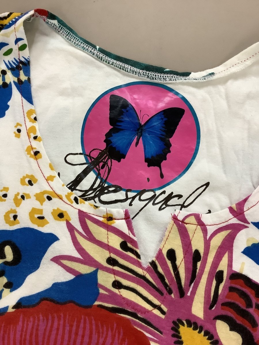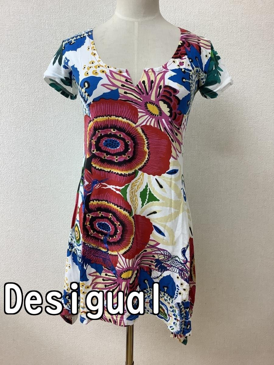 | Desigual デシグアル カラフルプリント チュニックカットソー 【表示サイズ】 M 【平置き実寸】 脇下身幅 40cmほど 着丈 75cmほど 肩幅 33cmほど そで丈 12cmほど 【季節感】夏向け 【状態その他】 目立った傷や汚れなし ・ポケットはありません ・ストレッチ性のある生地です ・肩パット無し 当店管理番号:10^141034 |