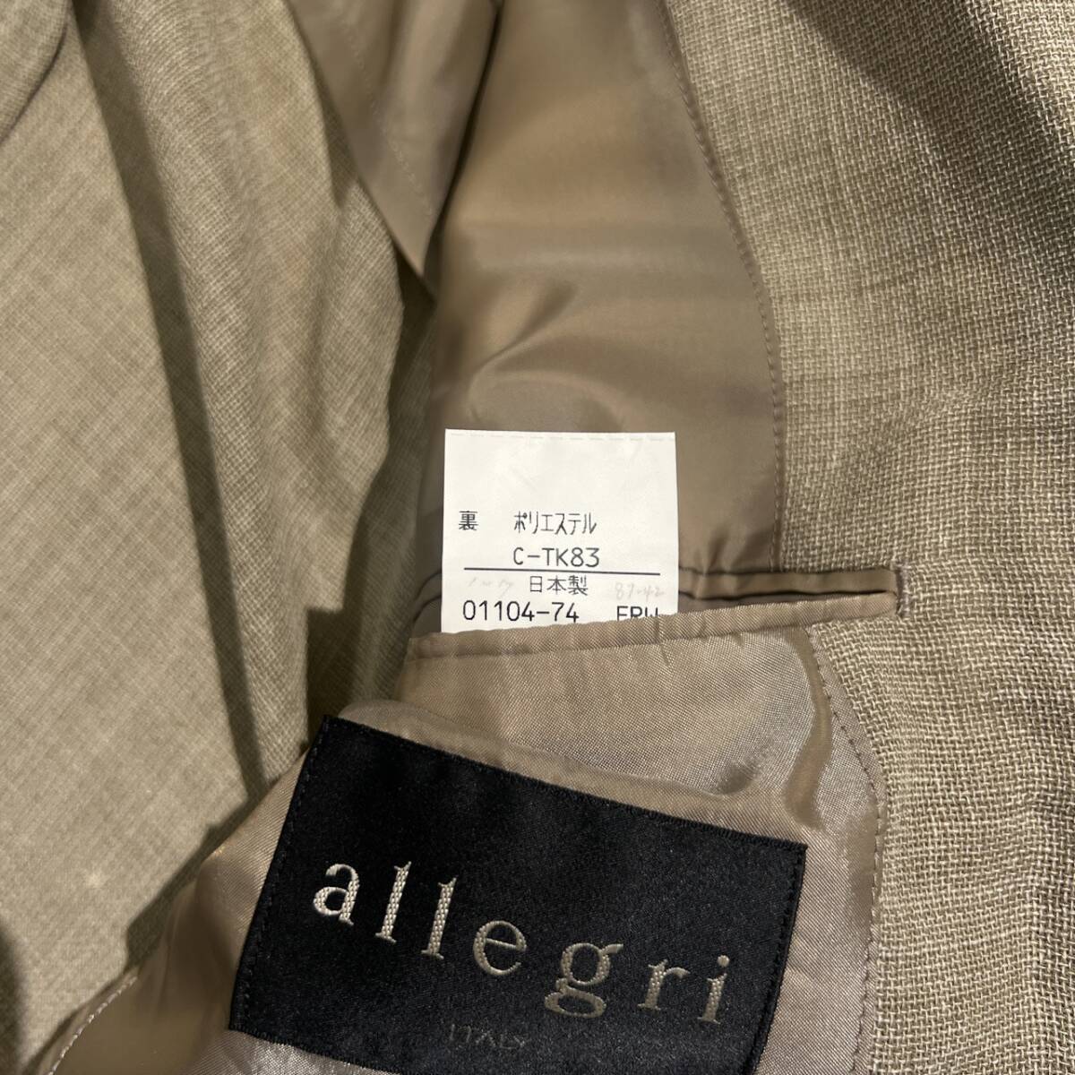 | 商品名 | allegri ITALY アレグリ 2B サマー テーラードジャケット L /メンズ/ベージュ系/C-TK83 |