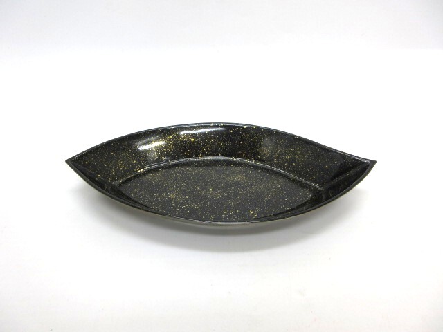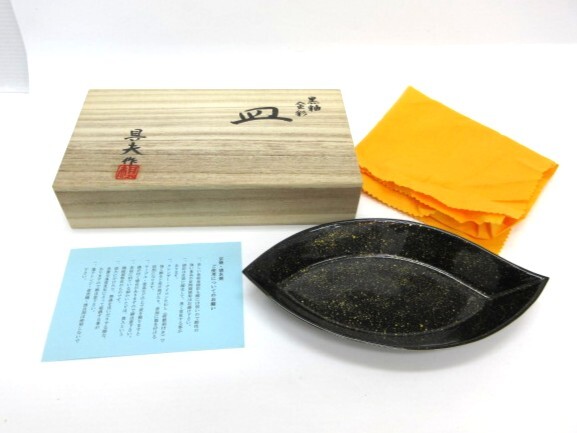 | 【11-49】京焼 清水焼 叶具夫 黒釉 金彩 皿 プレート 木箱 盛皿 中皿 和食器 | ||