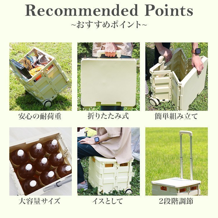 | サッと広げて使える!キャスター付きキャリーカートです!! 折りたたむと厚さ約8cmでコンパクト! 片手で持ち運びできるほど軽い! ハンドルは3段階の高さ調整が可能です。 キャリーカートはいろいろ使える!! ・アウトドア時の荷物の持ち運び ・スーパーなど、お買い物時の荷物の持ち運び ・ビジネス時に必要なアイテムの持ち運び ・スポーツ用品の収納 持ち運び ・ガーデニング用具や工具などの収納 持ち運び 今までは体力が必要だった荷物の運搬もスムーズにできちゃいます!! 【商品仕様】 カラー:チャコールブラウン サイズ(約): ・外寸:幅40×奥行33×高さ42cm ・収納時:幅40×奥行8×高さ42cm 重量(約):2.3kg 耐荷重(約):35kg 材質:ポリプロピレン樹脂 ※入荷時期によりロック解除ボタンの位置が変わっている場合がございます。予めご了承ください。 (折りたたみキャリーカート キャリー 折り畳み キャンプ レジャー スポーツ) |