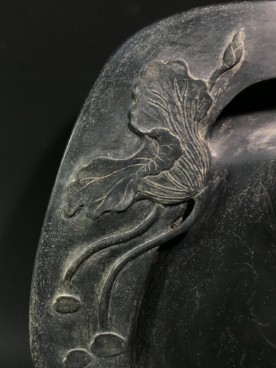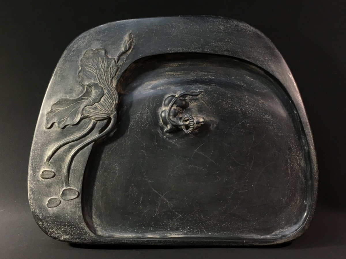 【安】清時代 袁枚銘 眉紋歙硯 荷塘浴牛紋硯 端渓硯 書道具 文房具 極細工 中国古美術 時代物 古董品 306 サイズ(約寸) |