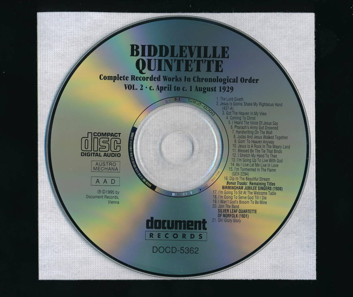 BIDDLEVILLE QUINTETTEのCD「COMPLETE RECORDED WORKS IN CHRONOLOGICAL ORDER VOLUME 2 (1929) + BIRMINGHAM JUBILEE SINGERS (1930), SILVER LEAF QUARTETTE OF NORFOLK (1931)」の輸入盤・中古品です。