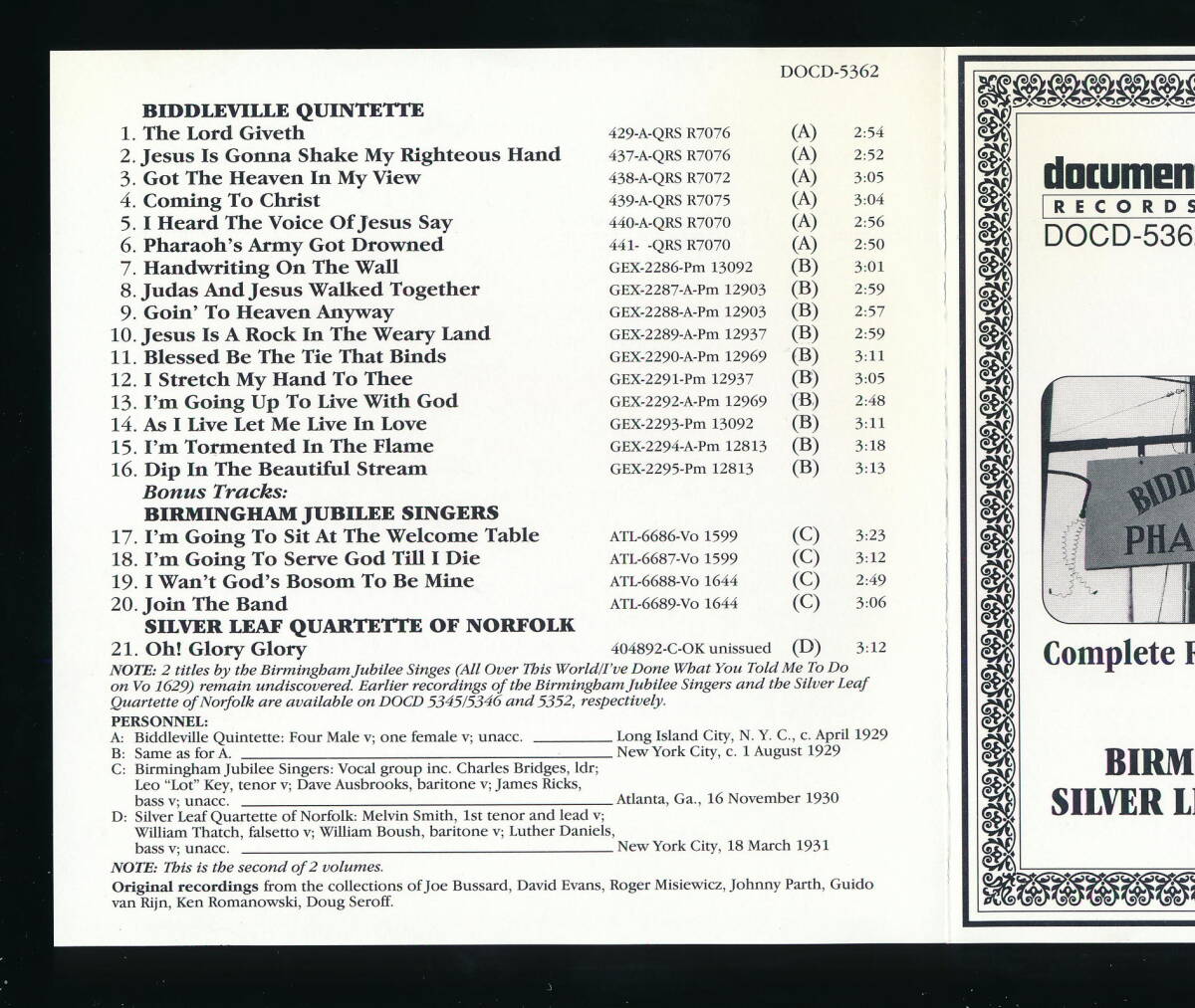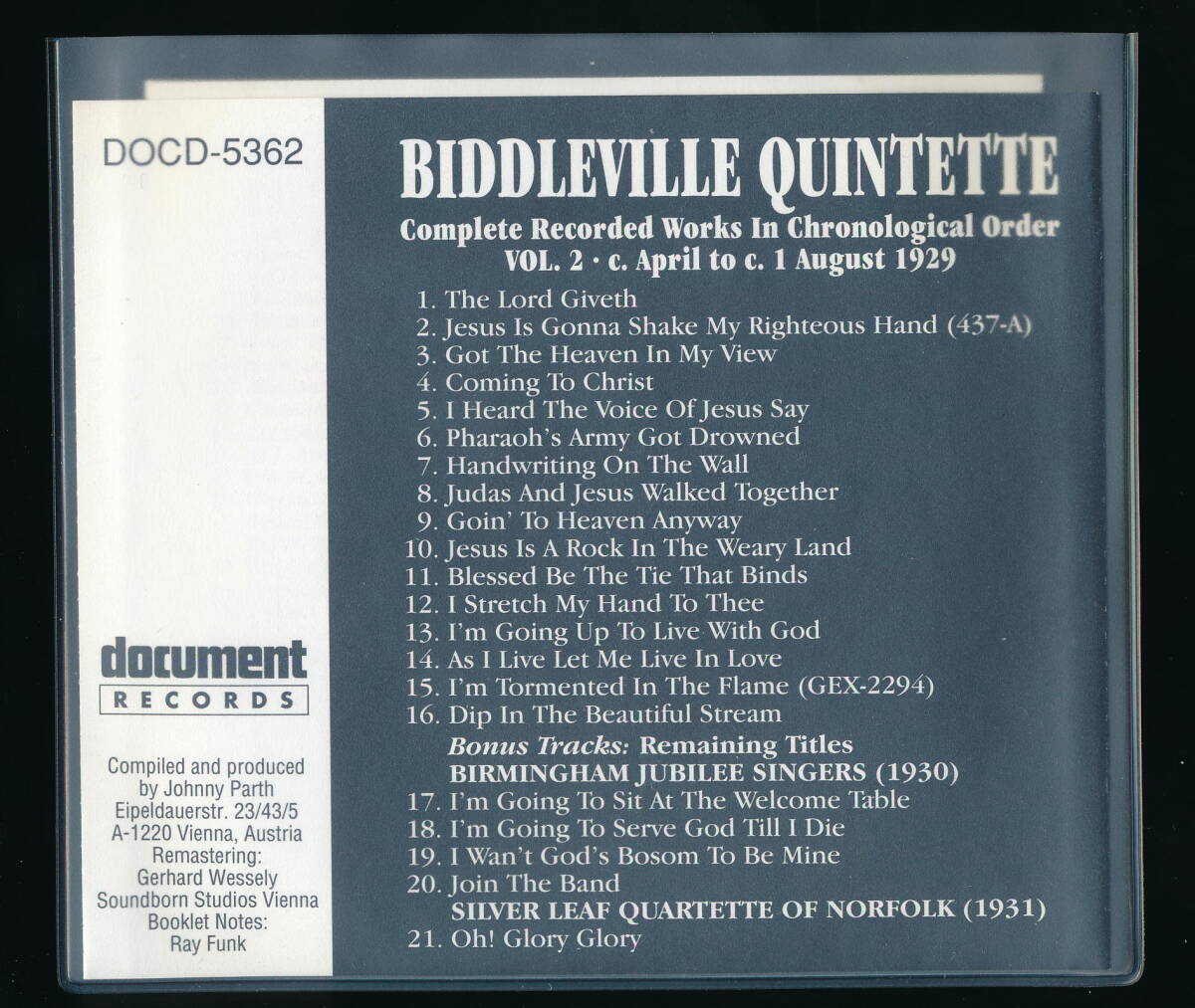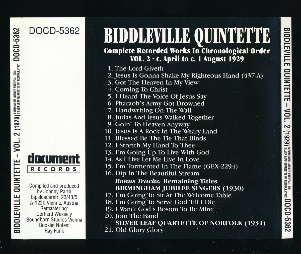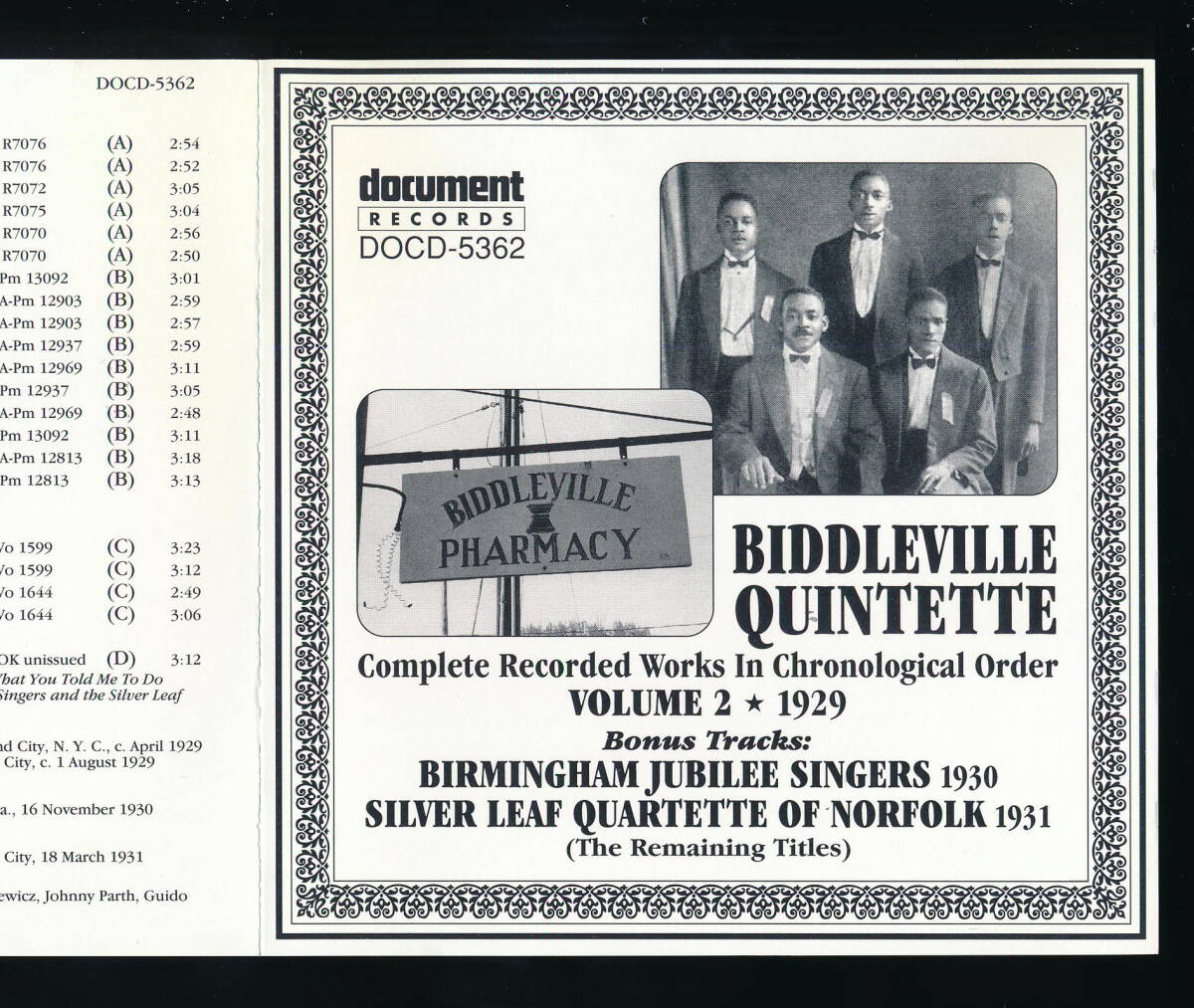 □タイトル:COMPLETE RECORDED WORKS IN CHRONOLOGICAL ORDER VOLUME 2 (1929) + BIRMINGHAM JUBILEE SINGERS (1930), SILVER LEAF QUARTETTE OF NORFOLK (1931)