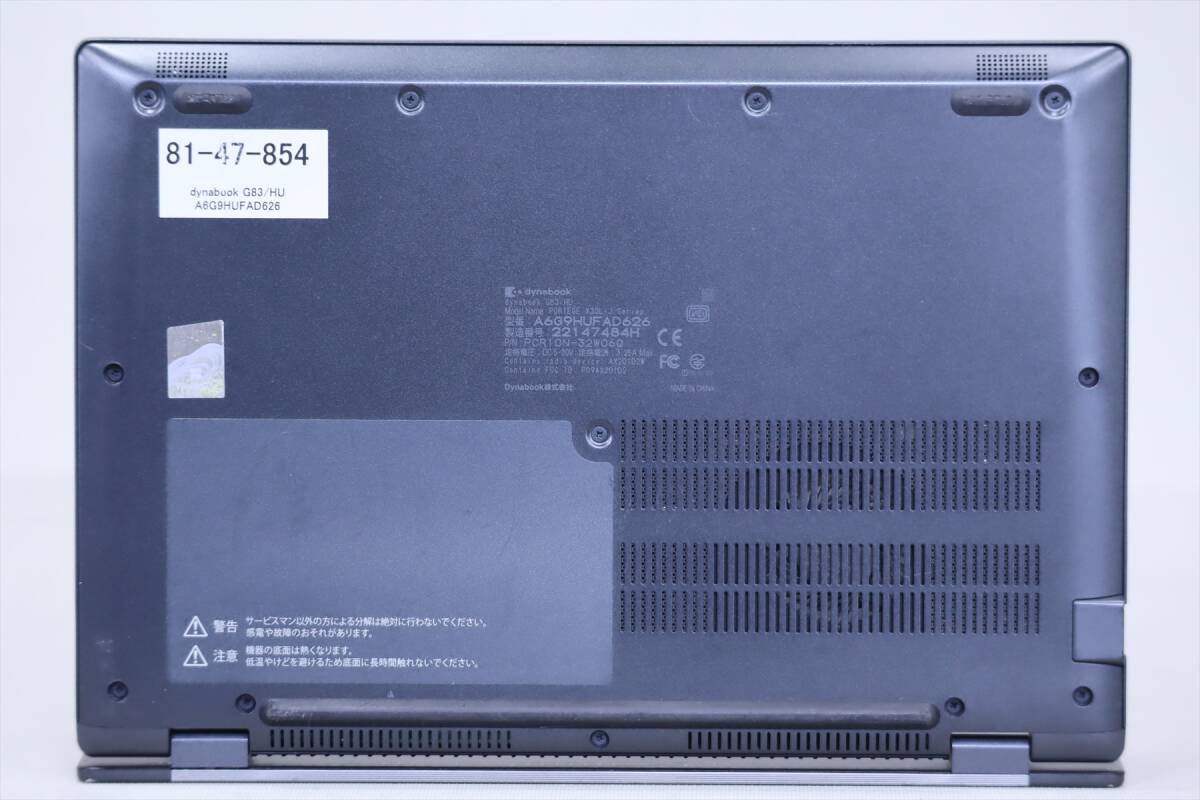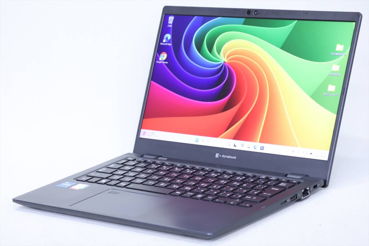 【メーカー】TOSHIBA・Dynabook ノートパソコン 【型番/品名】dynabook G83/HU A6G9HUFAD626 【CPU】Core i5-1135G7 2.40GHz / 4コア8スレッド / ターボ・ブースト2.0最大4.20GHz 【メモリ】16GB 【ストレージ】SSD 256GB NVMe 【ディスプレイ】13.3インチ FHD 解像度 1920x1080 ※カテゴリ--13.0~13.9インチ 【グラフィック】Intel(R)内蔵グラフィックス 【光学ドライブ】-- 【Webカメラ】搭載 【無線LAN】Wi-Fi 6(IEEE802.11ax)対応 【その他装備】Bluetooth、USBTYPE-C(Thunderbolt4)x2、顔認証 (※その他インターフェースは画像とメーカーページ等でご確認ください。) 【OS】Windows11Pro-64bit 【Officeソフト】アプリ無し(Microsoft Web版Officeご利用可) 【ウイルス対策】Windows Defender、Windowsファイアウォール 【寸法/質量】約306.0(幅)×210.0(奥行)×17.9(高さ)mm/重量:約888g(仕様・構成により変動する場合あり) 【付属品】無 【メーカーページ】(スペック完全一致でない場合あり) https://dynabook.com/b/spec/g83hu_mar_2022_spec.pdf 【取扱説明書】(機種・型番完全一致でない場合あり)。 https://dynabook.com/b/manual/sb-cr1-01.pdf