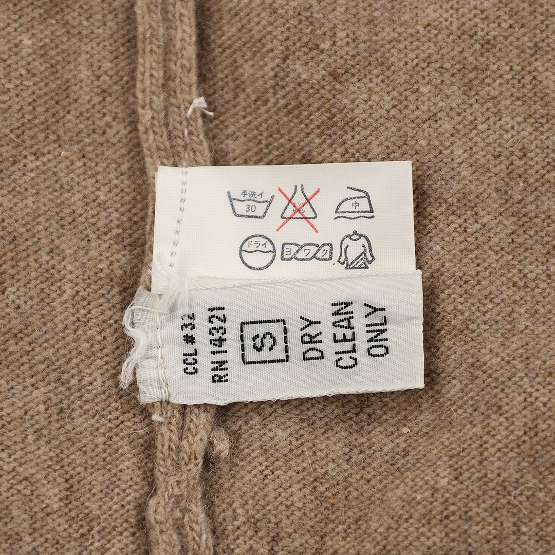 | ブランド・素材・デザイン特徴 | 当時のベーシックなトラディショナルテイストのVネックセーター。 ウール100%表記だけですが、カシミヤ混かカシミヤ100%の可能性があります。 着用した時の感想は、カシミヤの(ふわっ、とろ)温もりを感じます。 在籍していた会社(1981年~1986年)の商品だったと思います。 70年代初頭に日本で初めてBARACUTAの代理店契約を締結して、その独占販売権を獲得した"DESMOND INTERNATIONAL"という会社です。 |