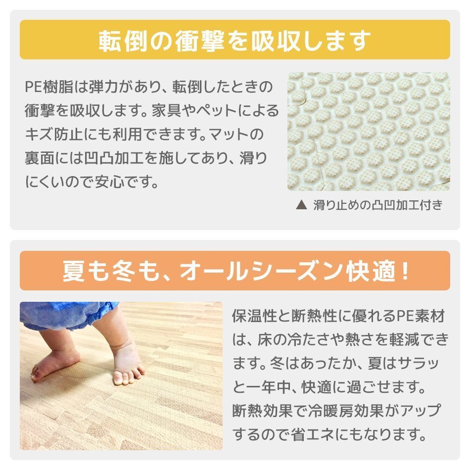 | 60cm 大判 ジョイントマットです。 カッターやはさみで簡単に切れるのでレイアウト自由自在! 足音をやわらげてくれるので、子供部屋やフローリングのお部屋に最適です! 適度なクッション性が転倒時に衝撃を和らげてくれます! 冬は床下からの冷気をカット! 夏は冷房による温度を効率よく保ちます。 汚れた部分は取り外して水洗いが出来てカンタンお手入れ♪ 嬉しい!サイドパーツ付き! 壁ぎわに敷いても、隙間なくキレイに。 掃除がラクラク!! 自然をイメージした木目デザイン! お部屋に落ち着いた雰囲気を与えてくれます! ■商品コード:FCA0560U ■商品仕様 カラー:ナチュラル サイズ(約):幅60×奥行60×厚み1.0cm(※1枚) 素材:PE素材 ■商品内容 ジョイントマット×64枚 サイドパーツ(角付きパーツ64本、角なしパーツ64本) ■注意事項 ※EVA樹脂の臭いが最初はある程度しますが、人体には影響ありません。 臭いによる返品はお受けできませんので、臭いの気になる方はその旨をご了承の上ご落札をお願いいたします。 ※重量物を載せますと、マットが凹み変形する恐れがあります。 ※入荷時期によって、厚みや幅に多少の誤差がある場合がございます。あらかじめご了承ください。 ※仕様・デザインは改良のため予告なく変更することがあります。 ※床材との温度差で製品が反る場合があります。 ■保障期間 7日間 ※商品到着後7日以内の初期不良・破損のみご対応させていただきます。 【もちろん新品未使用品です】 |