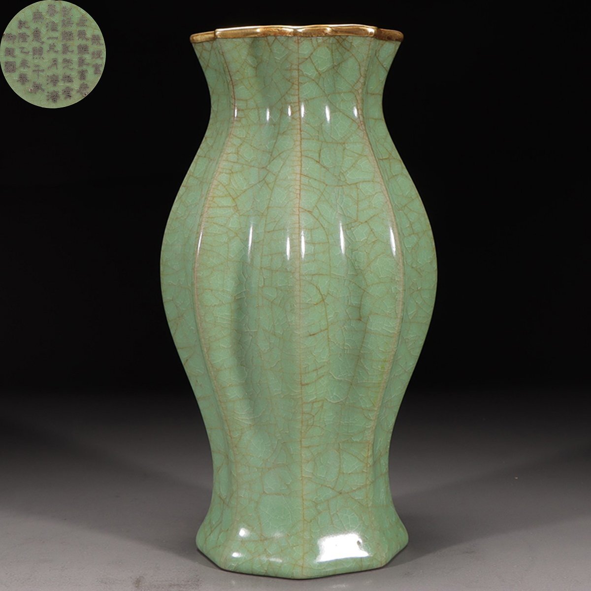 【安】宋時代 汝窯緑釉氷裂紋八稜瓶 共箱 唐瓷 染付 古陶瓷 古美味 中国古美術 古董品 304 サイズ(約寸) |