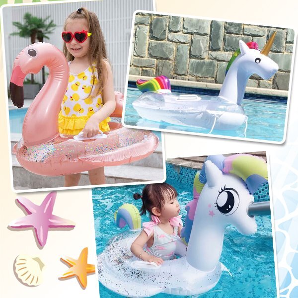☆ラメ入りキッズフロート ※ご購入されましたらオーダーフォームに以下のタイプをご連絡ください。 【タイプ】 ・パステルユニコーン(ラメ) ・ユニコーン(ラメ) ・フラミンゴ(ラメ) 【商品名】 ラメ入りキッズフロート 【商品説明】 キラキラのラメ入り!ゴージャスで映えるキッズフロートです。 バランスを取りやすい持ち手付き。体がずり落ちるのを防ぐ足入れタイプなので水慣れしていないお子様でも安心の設計。 ゴールデンウィークや夏休みのプール・海水浴はこれで決まり♪ 【タイプ】 ・パステルユニコーン(ラメ) ・ユニコーン(ラメ) ・フラミンゴ(ラメ) 【サイズ】 約80×70×57cm 内径:約28cm ※メーカーサイズ表記ですが、多少の誤差が生じる場合がございます。 【対象年齢】 1~6才 キーワード 【 水慣れ 透明 背もたれ付き おしゃれ インスタ映え SNS映え うきわ 足入れ O字 足穴 落下防止 落ちない 安全 海水浴 旅行 水泳 かわいい マリン 幼児 赤ちゃん用 子供用 プール用品 ビーチ 】 |