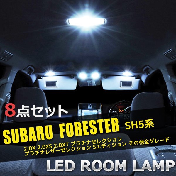 | 【適合車種】 スバル フォレスター SH5系 【適合グレード】 2.0X 2.0XS 2.0XT プラチナセレクション プラチナレザーセレクション Sエディション その他全グレード 【セット内容】 ・フロントランプ 2個(6連) ・センターランプ 1個(6連) ・ラゲッジランプ 1個(6連) ・ドアカーテンランプ 2個(6連) ・ポジション、ナンバー等 2個(ウェッジ型 T10) (LEDバルブはポジション・ナンバーランプ及び予備等にお使い頂けます。) 計:8点のセットになります。 ※形状対応 T5/T10/T15/T16/T20/BA9S/G14/S25/T10(30mm/44mm) T8(28mm)/T6.3(28mm/31mm)/H1/H3/H4/H7/H8/H9/H11 H16/HB3/HB4/D2R/D2S/D2C/D4R/D4S/D4Cなど 上記の形状に対応しております。 概ね全般の車に対応しています。 ※対応LED SMD・COB・CREE・FLUXになります。 ※こちらの商品はネコポスサイズになります。 | ||