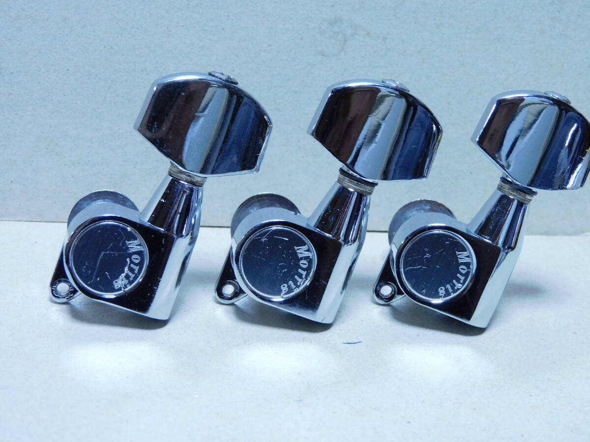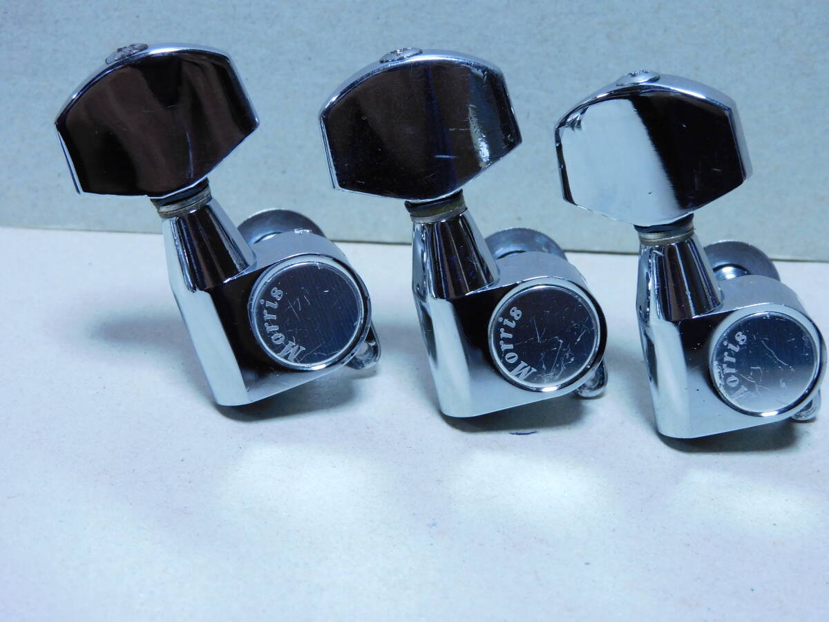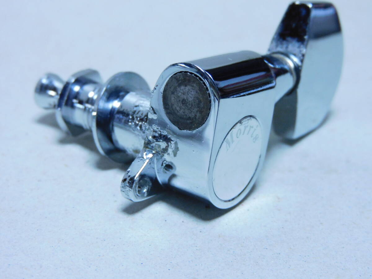 1970年代製と思われる「モーリス」初期型.刻印入り3x3ペグ「クロームメッキ」です。年相応のメッキの劣化や線キズ等はありますが使用上問題はありません。1個のペグに微かな腐食あります全体に綺麗です(画像参照)。点検済みで現状使用可能です。取り付け用新品ネジ6本付きです。状態は画像でご確認ください。当方にて簡単なクリーニングはしていますが必要なメンテナンスやクリーニングは落札者様でお願いします。画像にあるものが全てです。画像やコメントをご参考に入札お願い致します。それではオーションが終わりますまでよろしくお願い致します。中古点検品の為落札後のクレームやキャンセルはご遠慮下さい。またオークション開催中の入札の取り消しもお受け出来ません。あくまでも中古品なのでキズや経年劣化等些細な事や、完璧な商品をお考えの方は入札をお控え下さい。ご理解の上ご入札下さい。発送は「レターパックライト」で430円です。