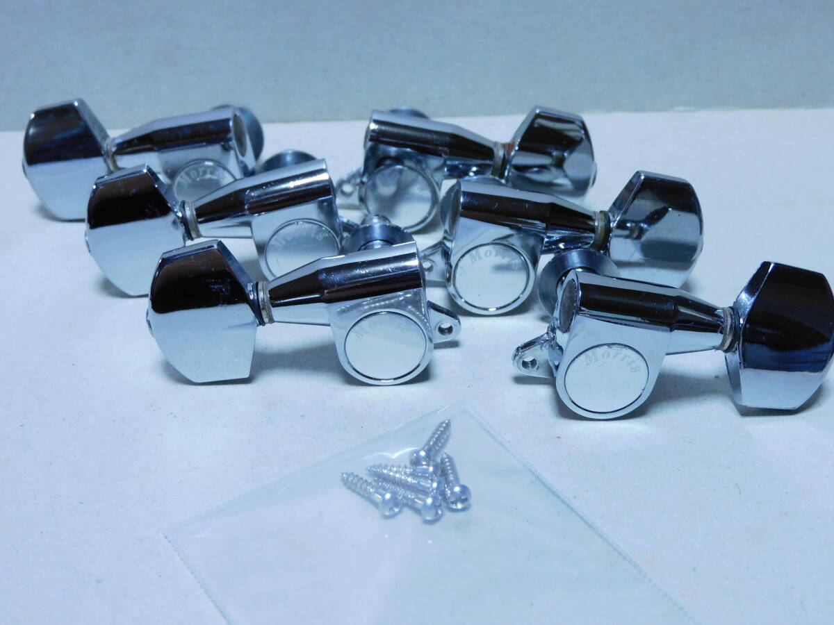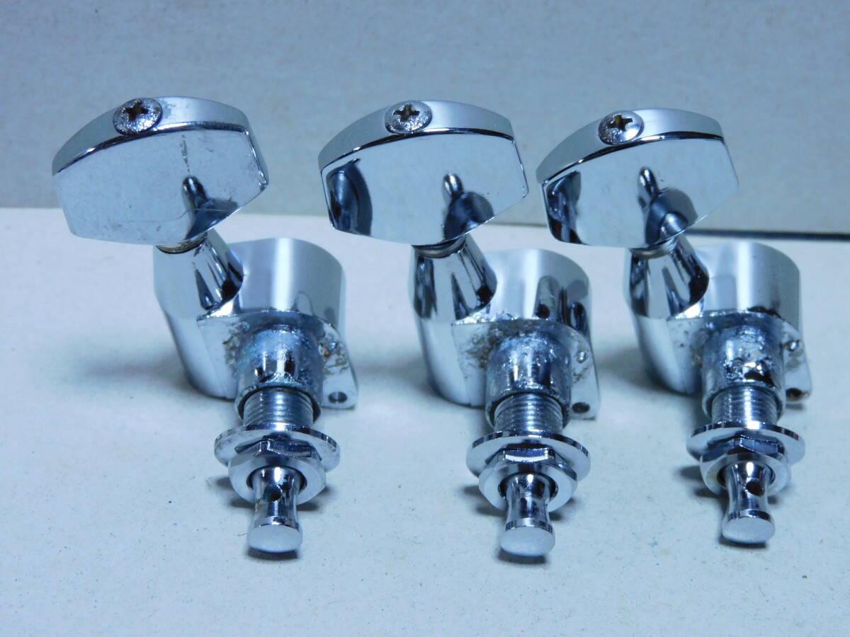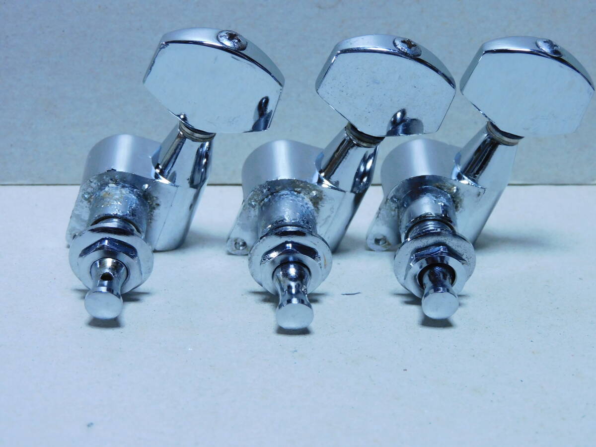 1970年代製と思われる「モーリス」初期型.刻印入り3x3ペグ「クロームメッキ」です。年相応のメッキの劣化や線キズ等はありますが使用上問題はありません。1個のペグに微かな腐食あります全体に綺麗です(画像参照)。点検済みで現状使用可能です。取り付け用新品ネジ6本付きです。状態は画像でご確認ください。当方にて簡単なクリーニングはしていますが必要なメンテナンスやクリーニングは落札者様でお願いします。画像にあるものが全てです。画像やコメントをご参考に入札お願い致します。それではオーションが終わりますまでよろしくお願い致します。中古点検品の為落札後のクレームやキャンセルはご遠慮下さい。またオークション開催中の入札の取り消しもお受け出来ません。あくまでも中古品なのでキズや経年劣化等些細な事や、完璧な商品をお考えの方は入札をお控え下さい。ご理解の上ご入札下さい。発送は「レターパックライト」で430円です。