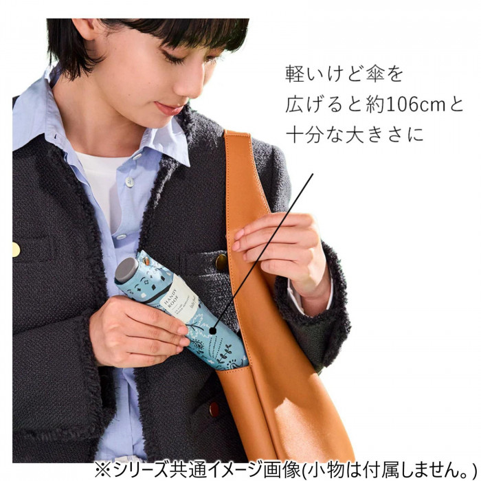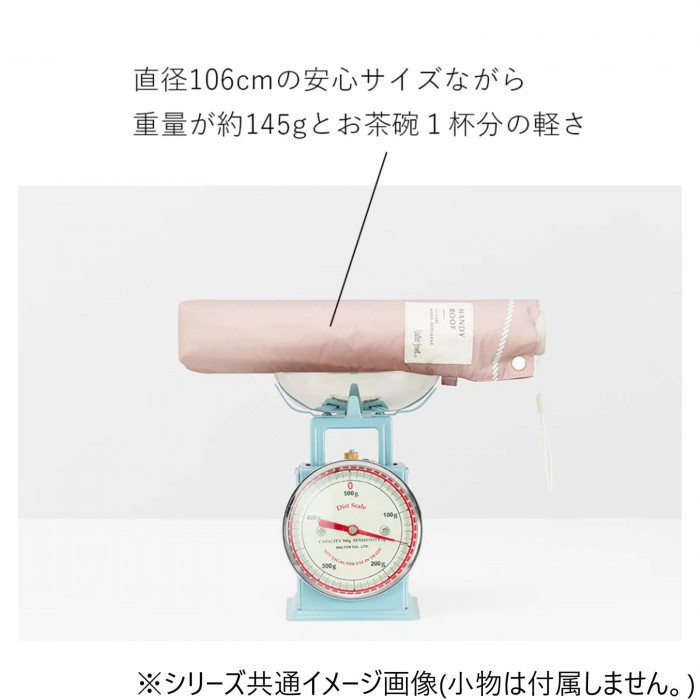 | サイズ | 直径:約106cm、全長:約58cm、親骨:60cm、収納時:H24.5×W4.5cm(直径) 個装サイズ:24.6×5.4×5.0cm |