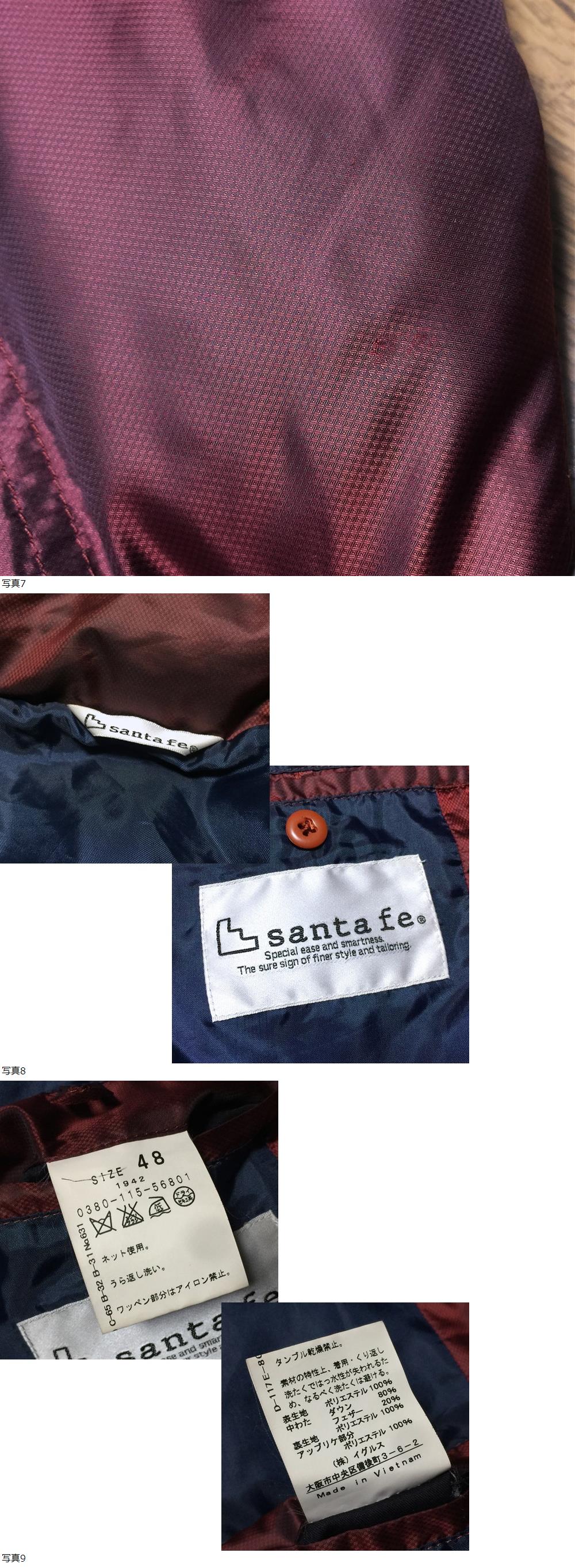 | 【ブランド】 santa fe サンタフェ 【デザイン・モデル】 ワッペン フィールド ダウンジャケット 【生産】 ㈱イグルス 【詳細・コメント】 santa fe サンタフェのダウンジャケットになります。光沢のある上質ポリエステル生地、中綿には含有率80%の高品質ダウンが詰まった軽量かつ防寒性に優れた一着。ボルドーカラーのミリタリーデザインに、ワッペンが配されたお洒落な一着。ダウンアイテムながらすっきりとしたスマートなシルエットで、カジュアルなアイテムでもラグジュアリーな雰囲気を演出した、幅広いコーディネートに対応可能な人気アイテムです。 正規品です。 【サイズ】 表記: 48 (メンズL程度) ※実寸を参考にして下さい。 平置実寸:身幅60㎝ 着丈68cm 肩幅49㎝ 袖丈60㎝ ※多少の誤差はご了承ください。 【カラー・パターン】 ボルドー系 ※ご覧になられるモニターや、デジカメの撮影具合によって色味が異なる場合がございますのであらかじめご了承ください。 【品質】 表地:ポリエステル100% 中綿:ダウン80% フェザー20% 裏地:ポリエステル100% アップリケ部分:ポリエステル100% 【コンディション】 USED 中古品 です。シワや右肩に薄傷(画像参照)等多少の使用感ございますが、目立ったダメージは無く状態は良好です。まだまだ着ていただけます!※写真参考に判断して下さい。ユーズドアイテムにご理解ある方のみご入札お願い致します 。 | |||
