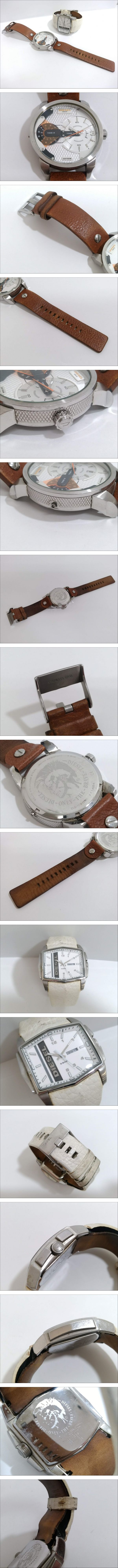 ※佐川急便の場合、離島など別途中継手数料がかかる地域が御座います。 その場合はお振込みを追加でお願いする場合が御座います事、 事前にご了承の程、宜しくお願い致します。 [商品名] 1円スタート DIESEL ディーゼル クォーツ 腕時計 合計2点セット [参考サイズ:DZ7309] ケース(リューズ込み)約6×4.8cm, 風防(ガラス/樹脂面)直径約4cm, ベルト幅約2.2cm, 腕周り約16-22cm, ホール数10個 [素材] 本革レザー×ステンレススチール他 [型番] DZ7309 DZ1339 [状態] 2点とも金属部分とレザー部分にキズ、汚れ、 左の時計はリューズが欠損、 右の時計のベルトにハガレが御座いますが、 その他は良いと思います。 2点とも時計の電池は切れております。 状態ランクは外観の状態のみで、 動作保証をするものでは御座いません。 電池交換、オーバーホール、等メンテナンスは落札者様でお願い致します。 時計は落札時の現状でのお渡しとなります。 付属品は写真のものが全てです。 記載の無い状態がある場合も御座いますが、写真でご判断下さい。 上記状態・条件を御理解頂ける方のみ、御検討の程、宜しく御願い致します。 現状での通常使用が可能かどうかは不明です。 専門知識がないため、不明な破損個所や、作動不良などがある場合も御座います。 メンテナンスや修繕、修理が必要な場合もありますが、御落札者様でのご負担でお願いいたします。 状態ランクは外観の状態のみで、動作保証をするものでは御座いません。 メンテナンス、修繕、修理等は御落札者様でお願い致します。 ご理解の上の、ご入札をお願いいたします。 [状態ランク] B
