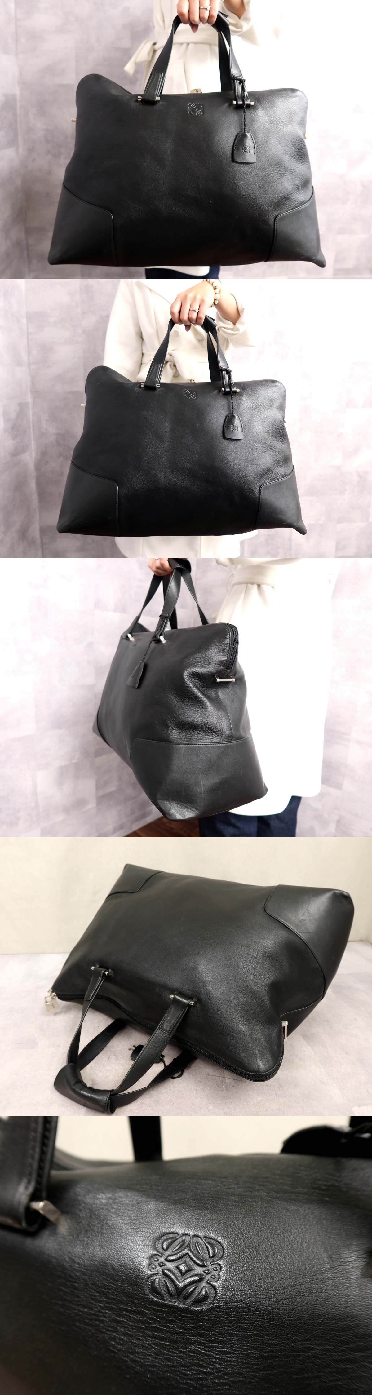●超美品●LOEWE ロエベ●メンズ●アナグラム●ロゴ型押し●カーフ レザー 本革●ボストン バッグ●黒●シルバー金具●かばん●Js64608 [浏览原始页面]