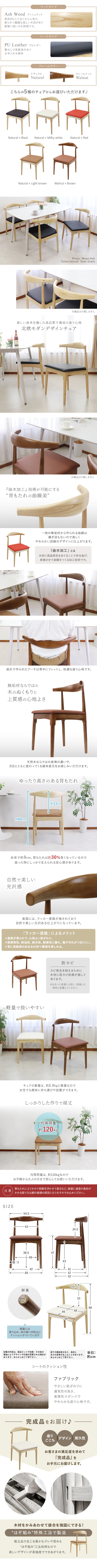 ●「フレーム(シート)」のお好きなカラーをご購入手続きの際【ご要望欄】へご記載ください。 【在庫状況】※完売となったカラーはご購入できませんのでご了承ください。 ナチュラル(ブラック)------------販売中。 ナチュラル(ミルキーホワイト)---販売中。 ナチュラル(レッド)--------------販売中。 ナチュラル(ライトブラウン)-----販売中。 ウォールナット(ブラウン)-------販売中。 ![]() ■木材はアッシュウッド、シートは程よく硬さと反発力のあるPUレザーです。 ■北欧の中でも人気であり続けるシルエット!北欧モダンデザインチェアです。 ■曲木加工が可能にした“背もたれの曲線美”は体にフィットし、最高の座り心地です。 ■フレームや脚部には無垢材を使用し、木のぬくもりや上質感を感じさせます。 ■木製ならではの表情の違いや経年変化をお楽しみいただけます。 ■他社に比べてゆったり高さのある背もたれは、しっかり支えられる安心感があります。 ■軽量タイプなので、女性でも簡単に持ち運びや設置ができます。 ■完成品なので、届いてすぐに使用できます。 ■重量: 【アッシュ材】 シート:PUレザー/約5.9kg ■耐荷重: 【アッシュ材】 シート:PUレザー/約120kg ■材質: 【アッシュ材】 〈共通〉アッシュウッド[無垢材](本体)、PVC(脚裏) 〈張り地〉PUレザー/PU(ポリウレタン) ●新品商品ではありますが、輸入商品の為、多少の擦り傷などがある場合がございますので、ご納得の上ご購入下さいませ。 ●ご購入後、お客様ご都合によるご返品、ご返金等は一切お受け致しておりません。 ●本商品を使用した際に発生したトラブル、事故につきまして、当社は一切の責任を負いません。ご使用に関しましては、全て自己責任にてお願い致します。 |
