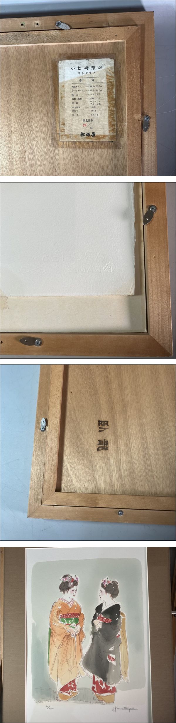 | N2-151 小松崎邦夫 リトグラフ 限定96/100 春宵/1991年制作/作家直筆サイン 松坂屋 検索用:京の華・舞妓三題より 安井曽太郎 林武 一水会 | ||