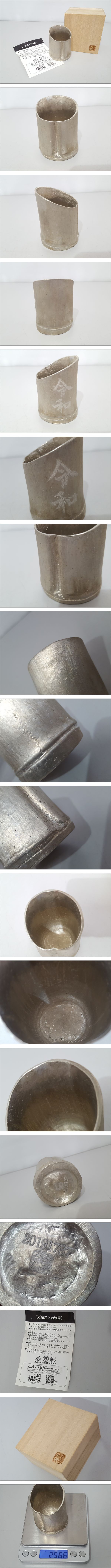 ※佐川急便の場合、離島など別途中継手数料がかかる地域が御座います。 その場合はお振込みを追加でお願いする場合が御座います事、 事前にご了承の程、宜しくお願い致します。 [商品名] 1円スタート 【美品】キャステム社製 錫製 竹型 令和ぐい呑み [サイズ] 直径約4.8cm, 高さ約6.5cm 重量約256.6g [素材] 錫 [カラー] シルバー系 [仕様] 箱付き [状態] 全体にくすみが御座いますが、 その他は殆ど傷み無い美品です。