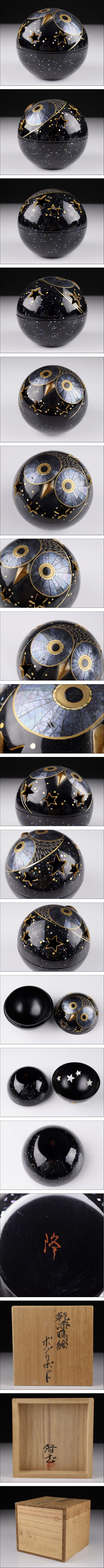 | 品 名:工藤隆志 作 乾漆 蒔絵螺鈿 梟細工 ポプリポット 香合 共箱 寸 法:高さ 7.3㎝ 直径 7.7㎝ 総重量:63g 状 態:小傷あり。写真にてご確認願います。 | |||