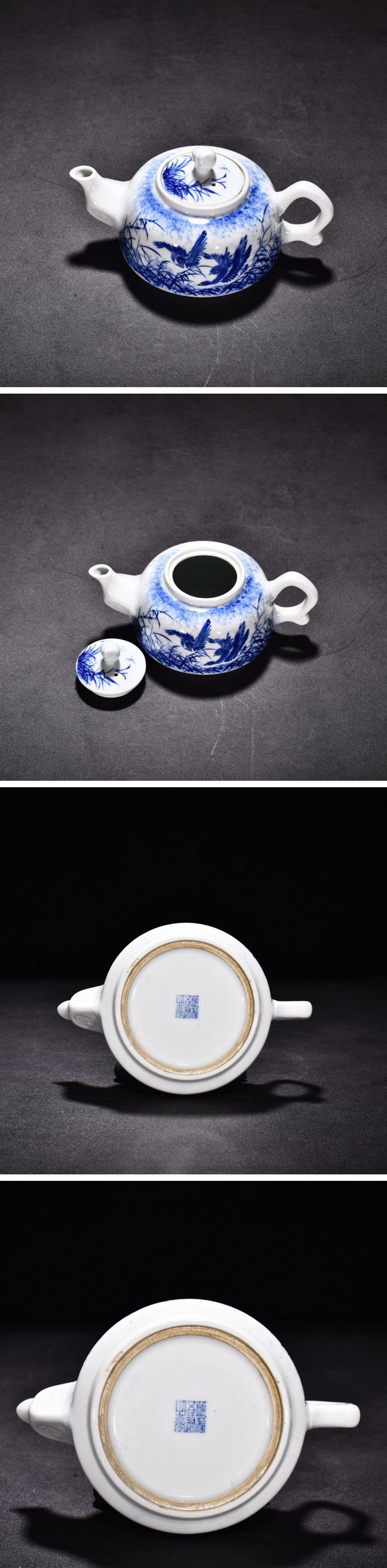 【雲錦】1円から 民国時代 王歩作 染付 花鳥紋急須 水注 古茶煎道具 古美術 骨董品8L21-6HP