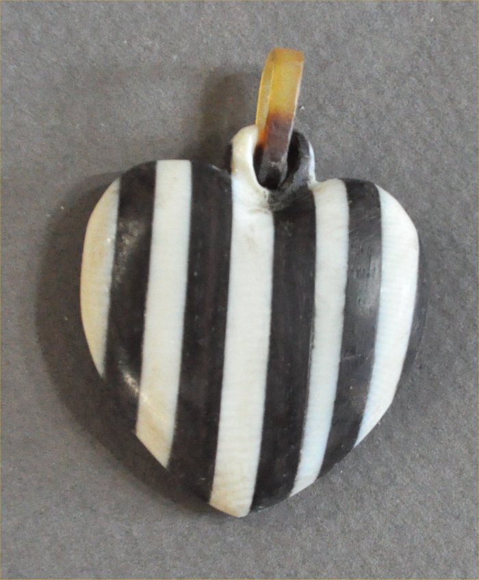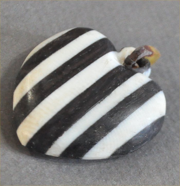 黒檀とマンモス牙の張り合わせのハートストライプ柄ペンダントサイズは、42mm×30mm×11mm磨き仕上げマンモス牙と黒檀の高級感あるストライプ柄のペンダントヘッドです。