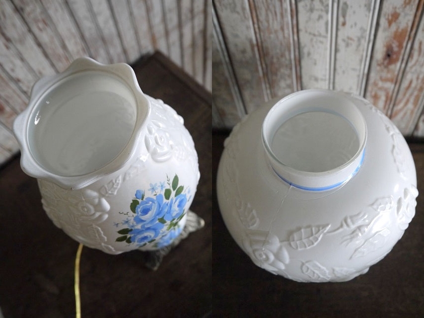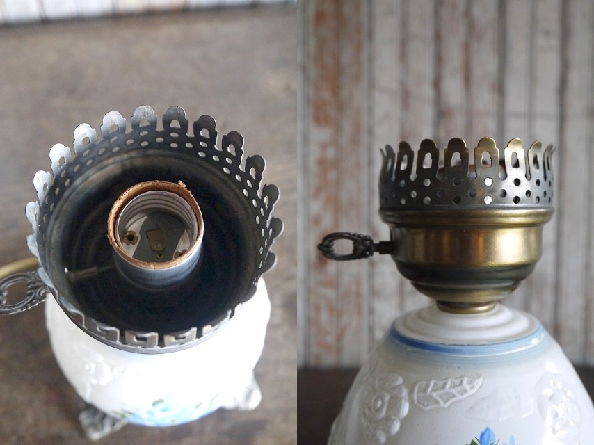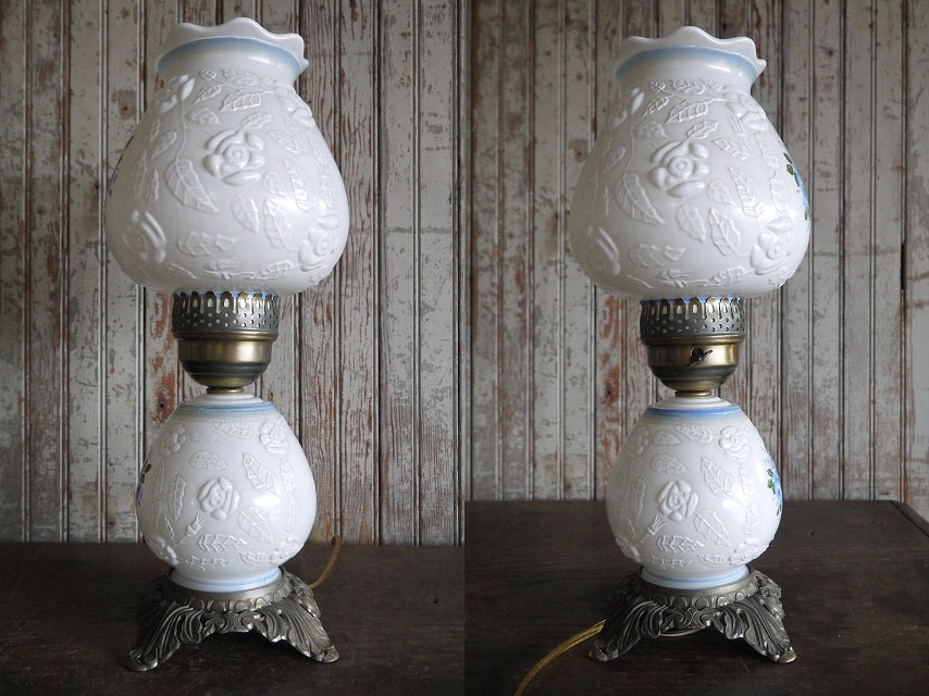 | 商品説明 岡山STAGEより出品します。アメリカで買い付けたアンティークのテーブルランプです。フラワーデザインのガラスが魅力で灯りをともすと雰囲気良く空間を演出し、消灯時にもインテリアのアクセントになりますのでお勧めです。上部のソケットに付いているスイッチで下側ガラス内部との点灯切り替えが可能です。通常コンセント式で電球は付属いたしませんが上部がE26mm口径、下側ガラス内部はE12mm口径の小型タイプですのでご用意ください。状態ですが、小傷や擦れ、汚れ、くすみ、塗装剥がれ、金属劣化や錆、ガラス生産工程上にできた気泡やガラスシェード縁に細かいカケ、全体的に多少の歪み等の使用感はございますが雰囲気を損なうようなダメージはなく、アンティークならではの状態かと思います。あくまでアンティークになりますのでご理解いただける方のご購入をよろしくお願い致します。 サイズ 高さ約42cm(シェード含む)、ガラスシェード直径約18cm、ガラスシェードの高さ約20cmです。 予定発送方法 保障の利く佐川急便の元払い140cmサイズ料金で行います。 コメント 店頭でも販売しております。タッチの差で売れた場合はご了承下さい。■落札後の連絡及びご質問の返答は基本的に午前10時~午後6時までとさせて頂きます。毎週水、木曜日、年末年始や時間外でのご連絡は休み明け及び翌日のご連絡となりますので予めご了承下さい。 STAGEホームページ https://stage-stage.ocnk.net// |