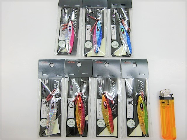 | 商品説明 | 新品のスロージグ30g 7個セットになります。セット内容はカラー:ピンクシルバー、ブルーピンク、ブルーシルバー、シルバー、パープルゴールド、レッドゴールド、グリーンゴールドが各1個の計7個セットになります。 ライターは大きさを比較する為に使用した物で付属はしません。 詳しくは画像を参考にして入札して頂く様お願い致します。 アシストフック付き チューンナップグローシール付き 非対象ボディ |