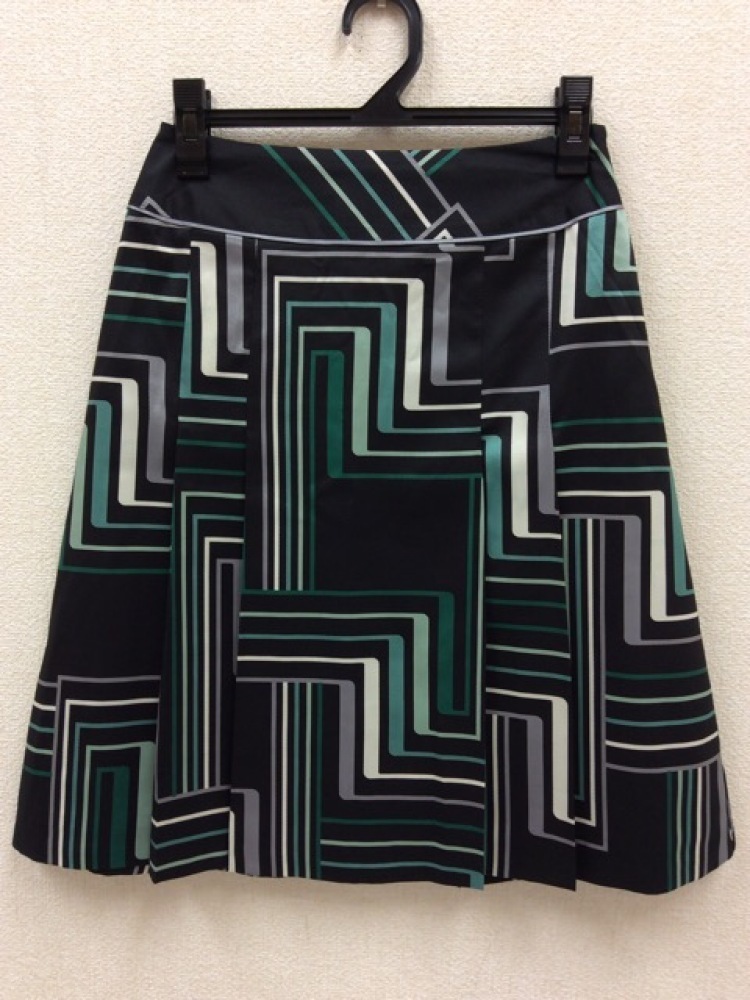 | 管理番号:10^125550 ケティ 黒×緑の柄 ボックスプリーツスカート 表示サイズ:1 実寸(参考)