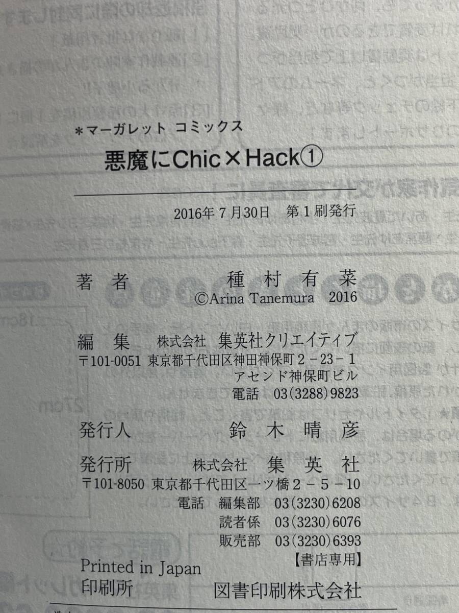 悪魔にChic×Hack1 マーガレットC種村有菜著者 平成28年 2016年発行初版【K178243】 [浏览原始页面]