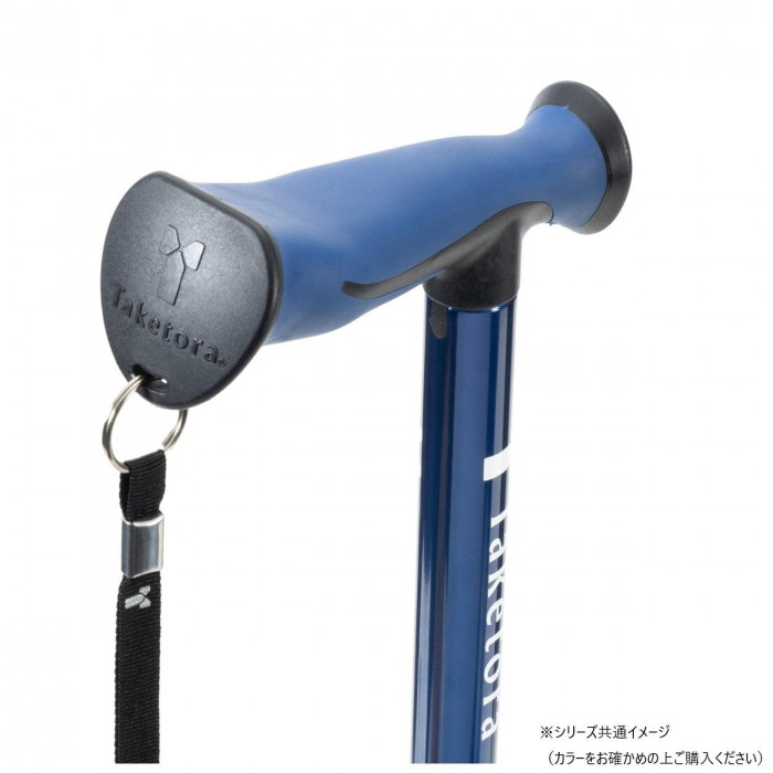 | 手にかかる衝撃をやわらげるクッション付きのグリップです。杖から手をはなしても安心なストラップ付です。ねばりある杖先がしっかり地面を捉え、単点杖に比べ、接地面積が広く安定感があります。 |