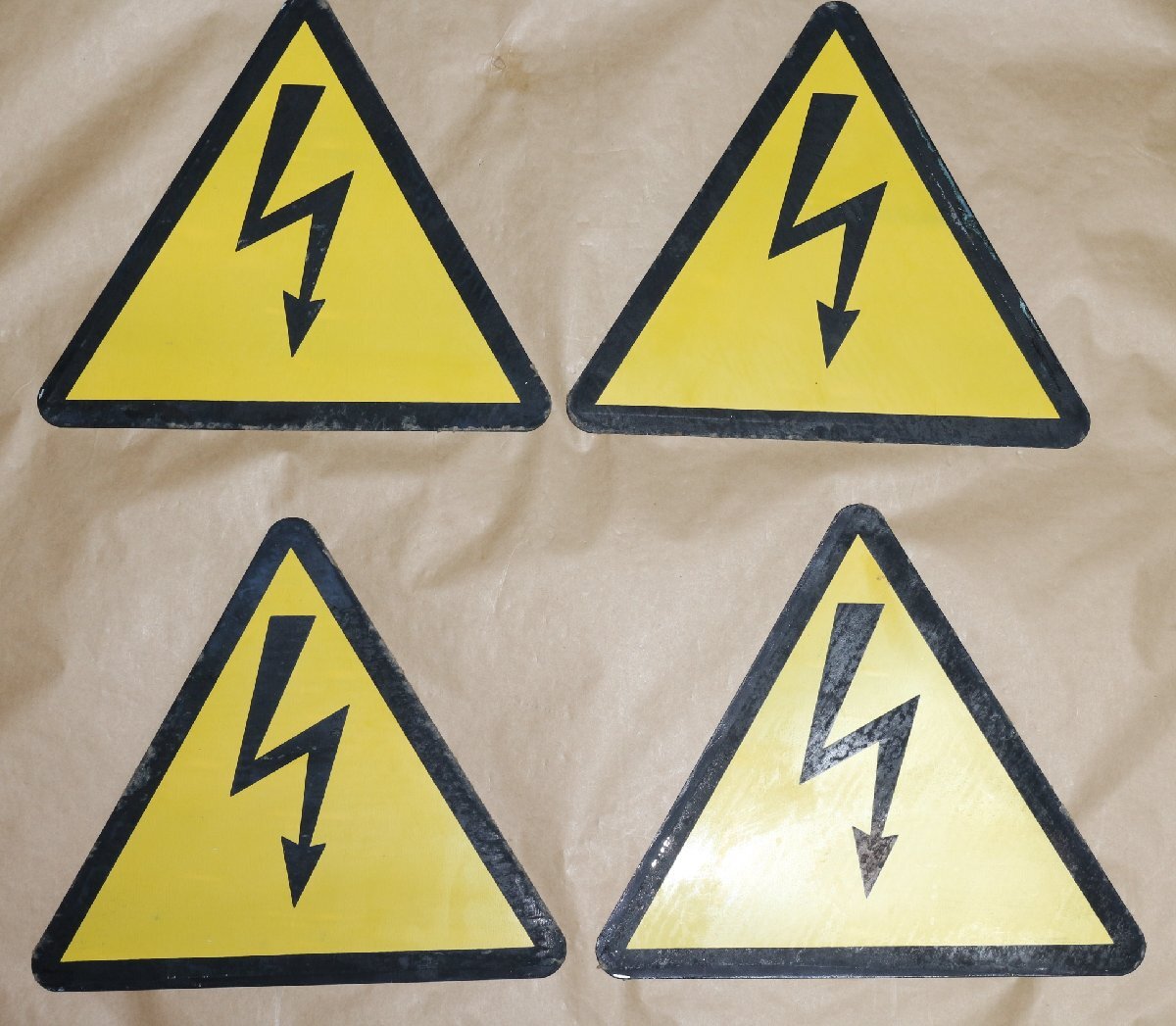 | 旧ソ ロシア軍用 感電注意 三角看板 2枚セット 兵士がペイントした雑感ありの薄板 看板べた塗り 未使用 汚い | |