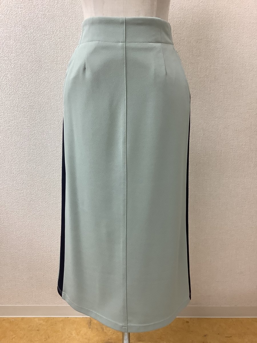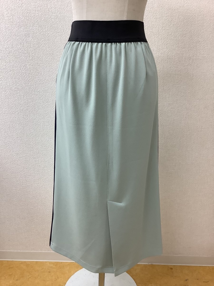 | 管理番号:137570 limala 薄グリーンに黒ライン ストレッチスカート ウエストゴム 美品 表示サイズ:38 実寸(参考)