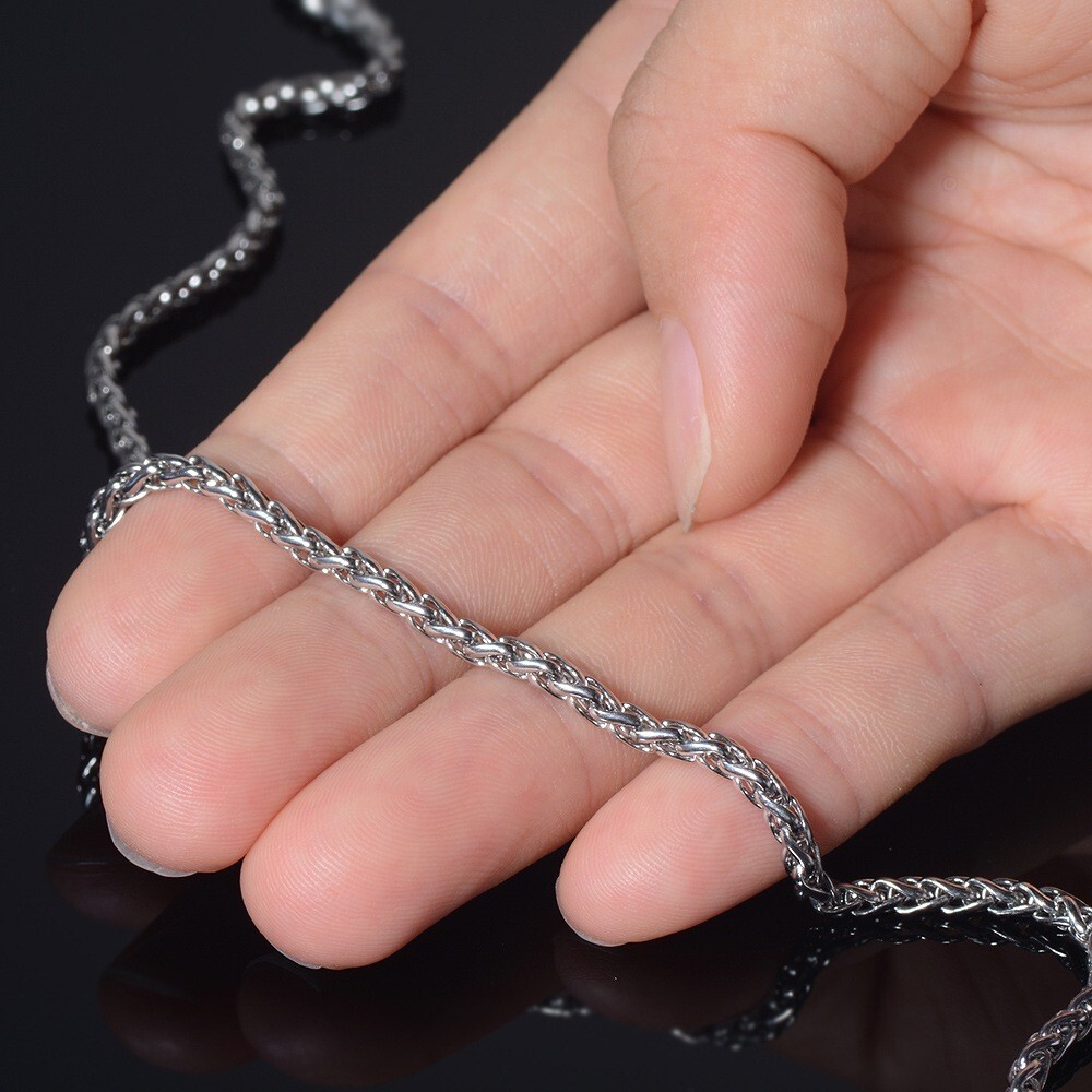 | 編み込まれたデザインが特徴的なスパイクチェーン。上品な雰囲気が漂うネックレスです。 ※こちらのチェーンは絡まりにくく万が一絡まってしまったとしても解きやすいデザインです。 |