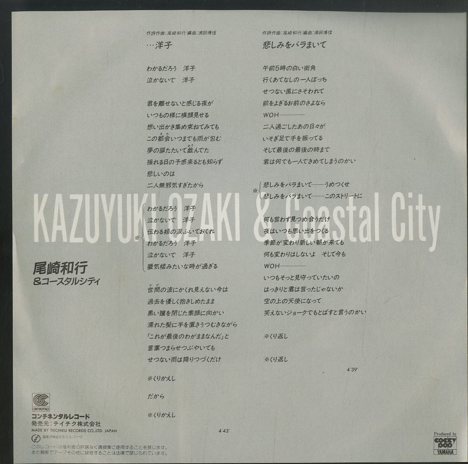 C00136538/EP/尾崎和行&コースタルシティ「...洋子/悲しみをバラまいて」
