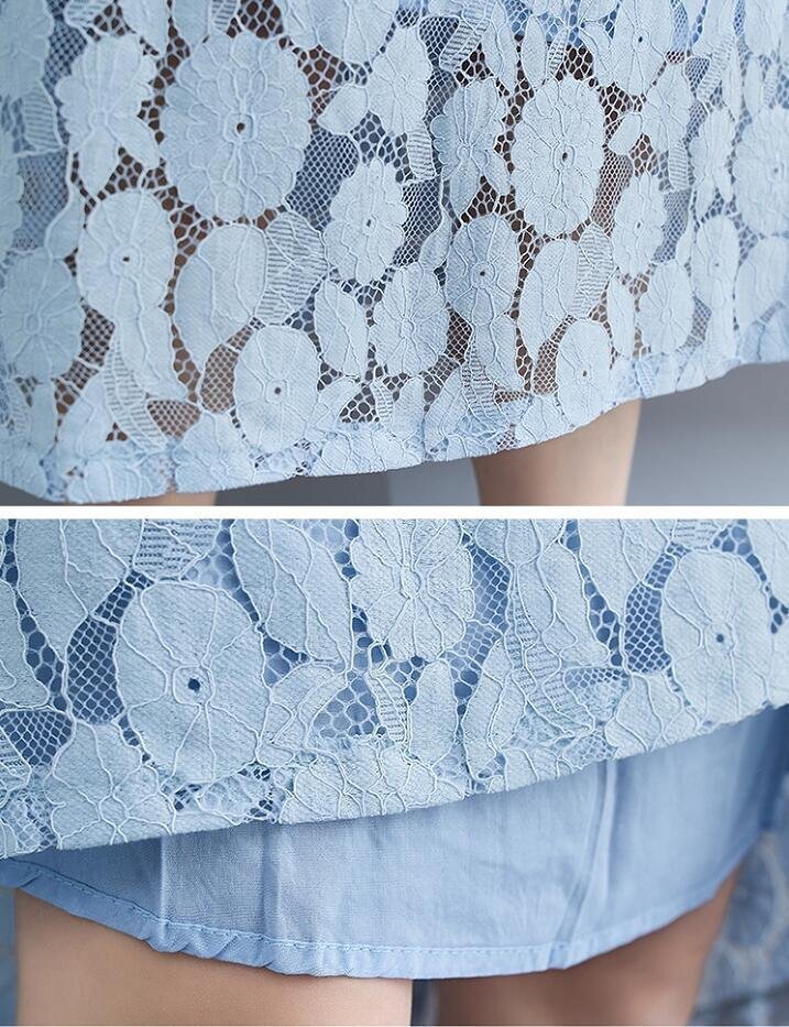 夏新品 上質ワンピース きれいめ 総レース ロング丈ワンピース レディース 半袖 大きいサイズ★ブルー/Lサイズ