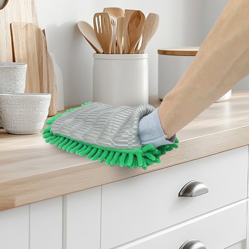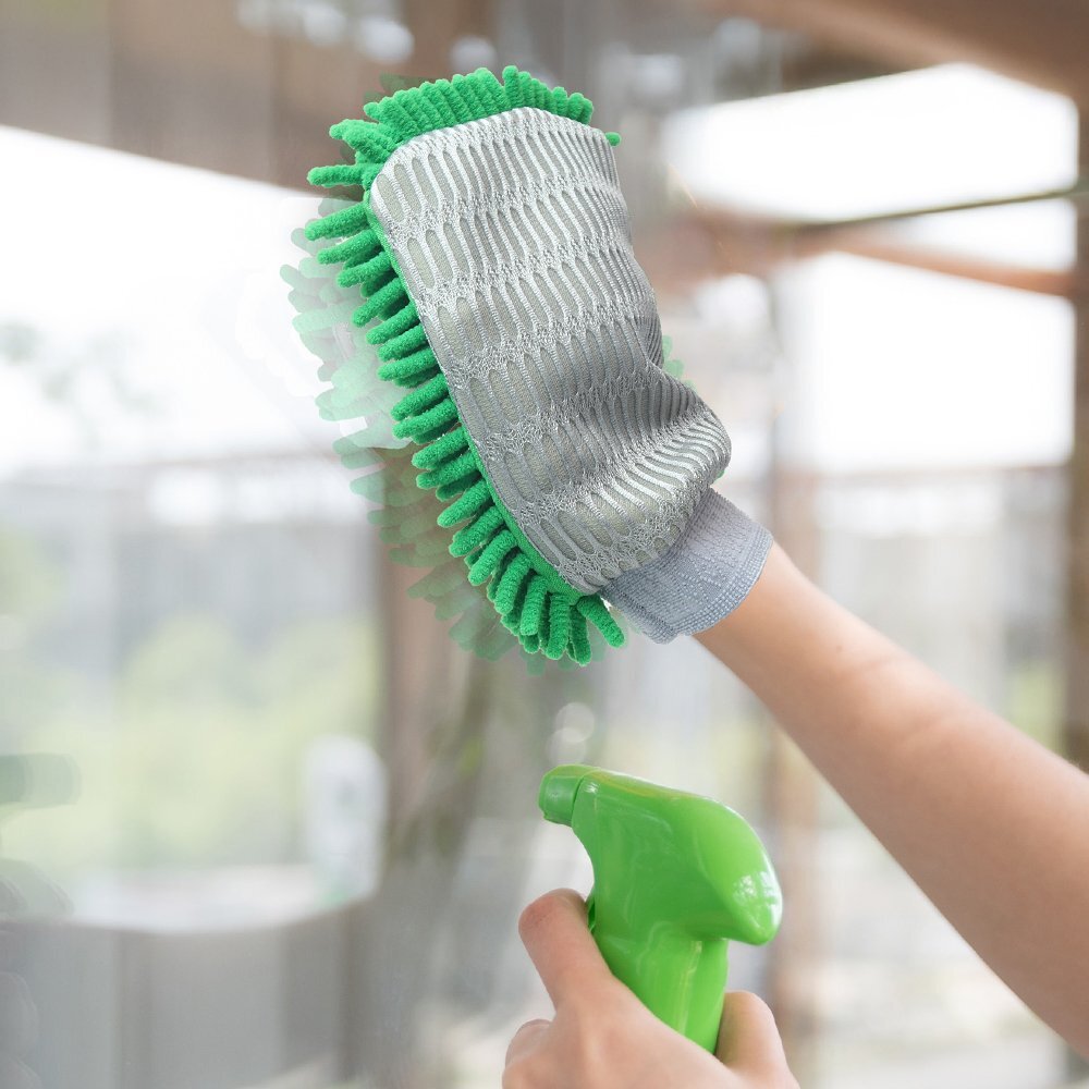 | 手袋型モップでサッと掃除! ホコリや水分もマイクロファイバーが吸着! |