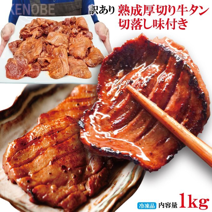 ![]() 訳あり熟成厚切り 牛タン切落し味付 焼肉直営店の味 1kg入 (約250gx4パック) 冷凍