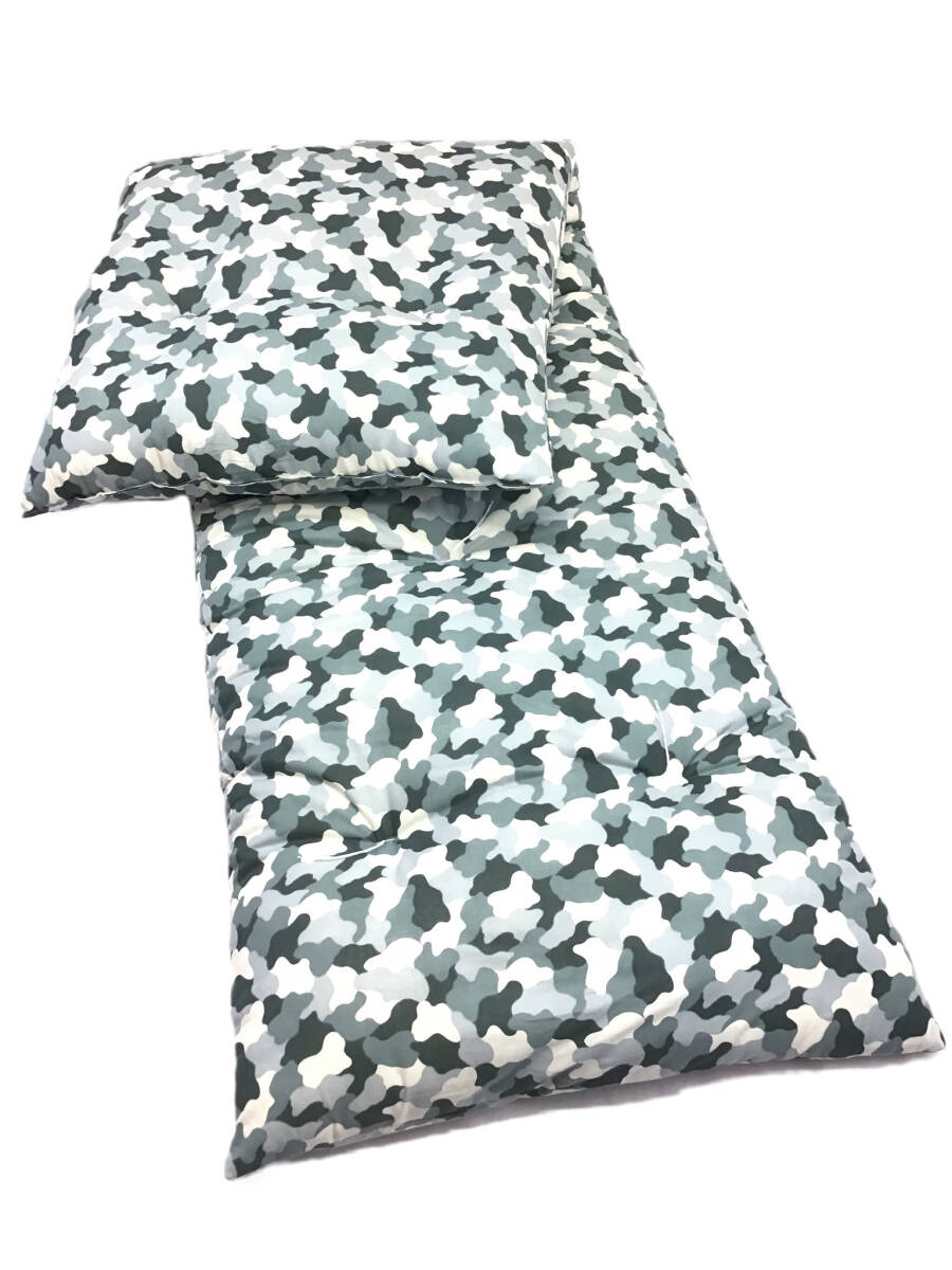 生地はコットン100%のプリント生地中綿はポリエステル100% 白の反毛綿を使用しております。