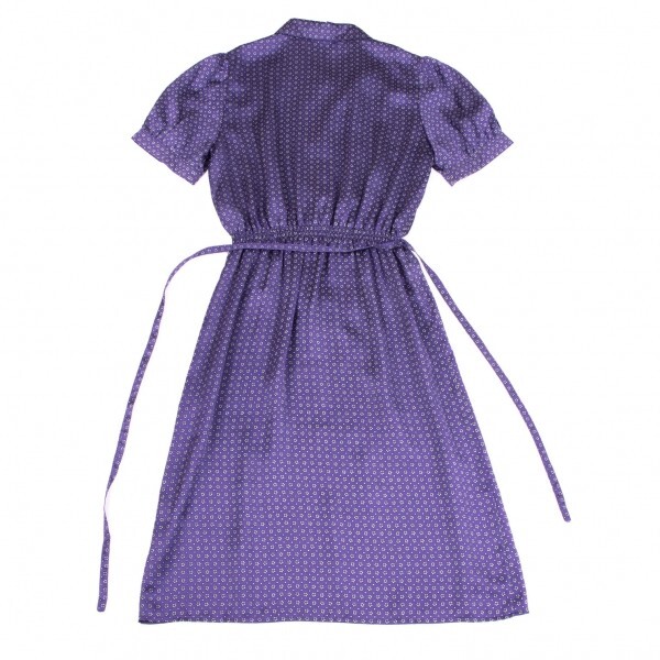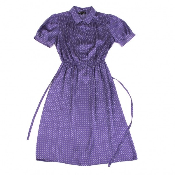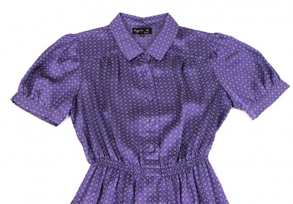 | アニエスベーagnes b. ポリ小花柄プリントウエストギャザー半袖ワンピース 紫40 |