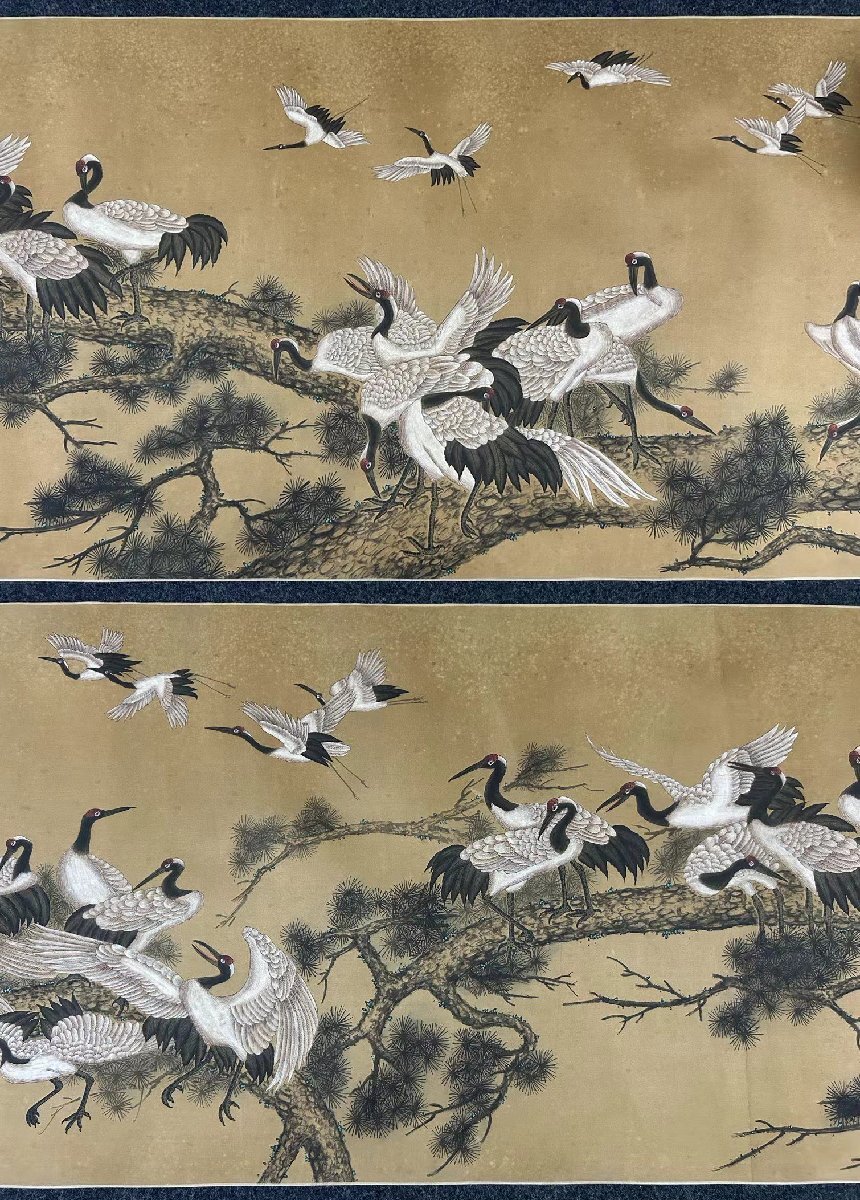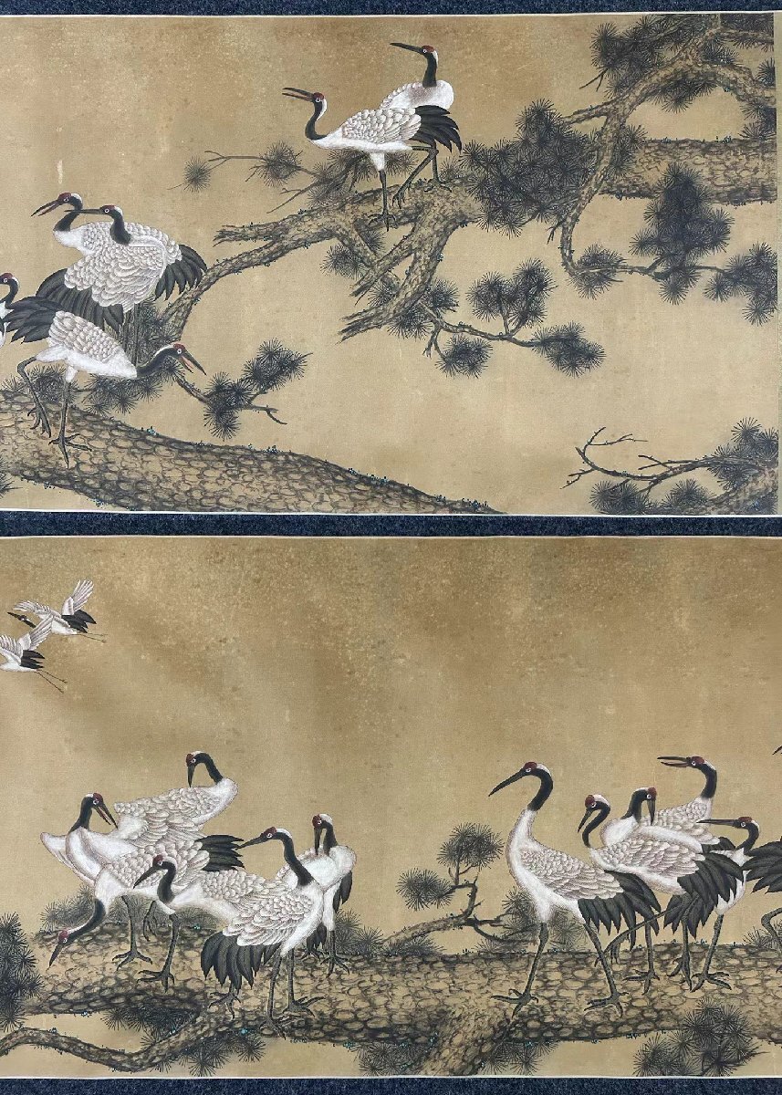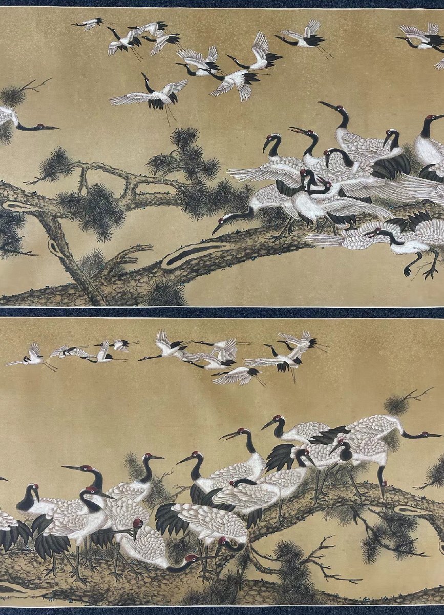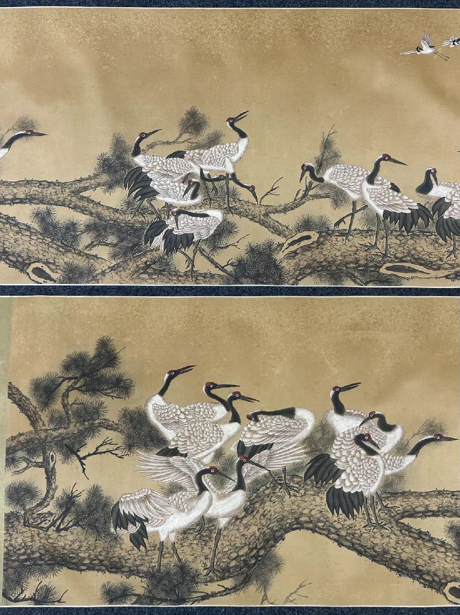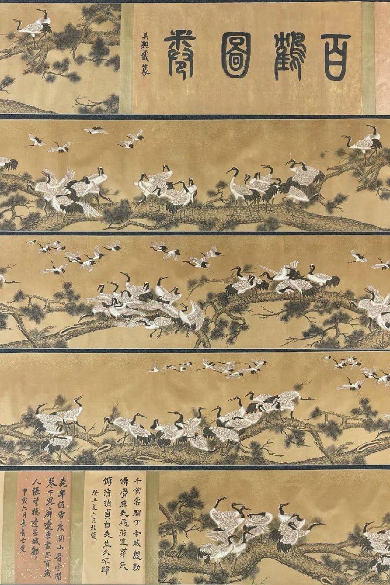 【安】中国清時代画家「郎世寧書」絹本「百鶴図長巻」 巻き物 中国画 墨寶妙品 中国書道 古美術 378 サイズ(約寸) |