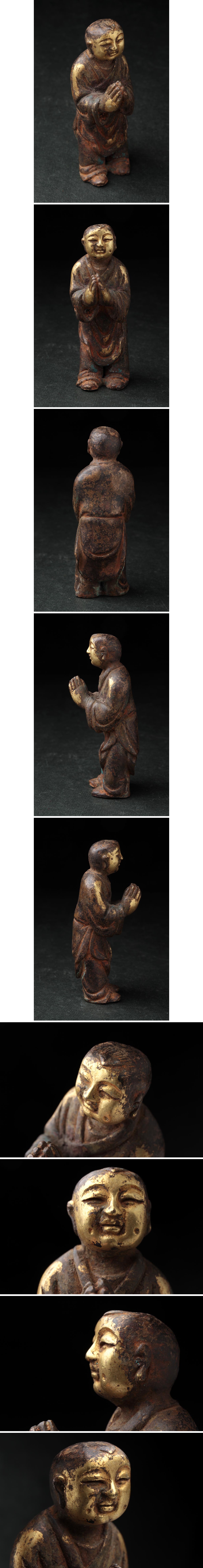 | ◆ 北隋時代 銅鍍金弟子立像 高8.7cm・銅鍍金合掌僧侶像・金銅僧人像 古金工 仏像 佛像 仏教古美術 中国古玩 ◆