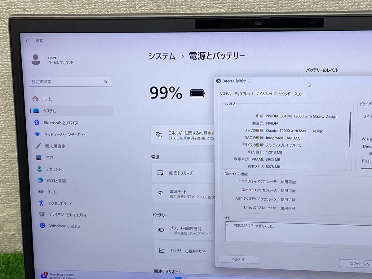 ■ビデオチップ: nvidia quadro t2000 with max-q design