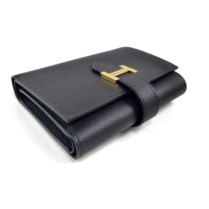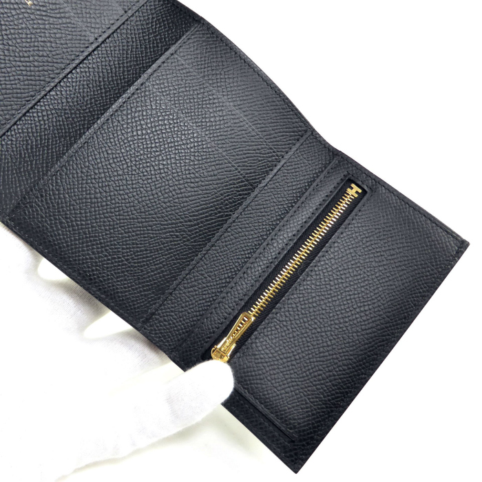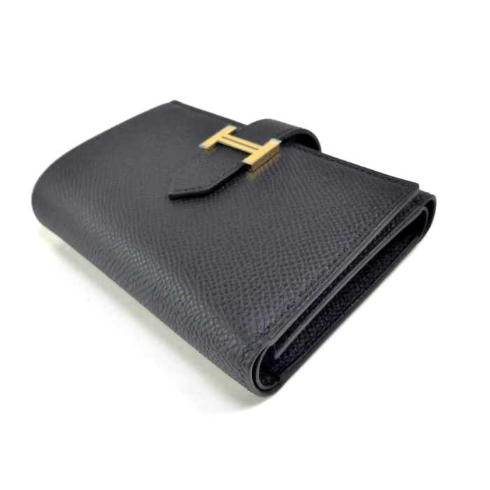| エルメス(HERMES) ベアン コンビネ ヴォーエプソン ブラック GO金具 W刻 三つ折り 財布 H082875CC(新品) |