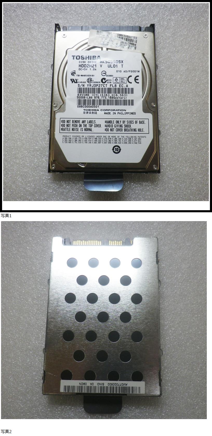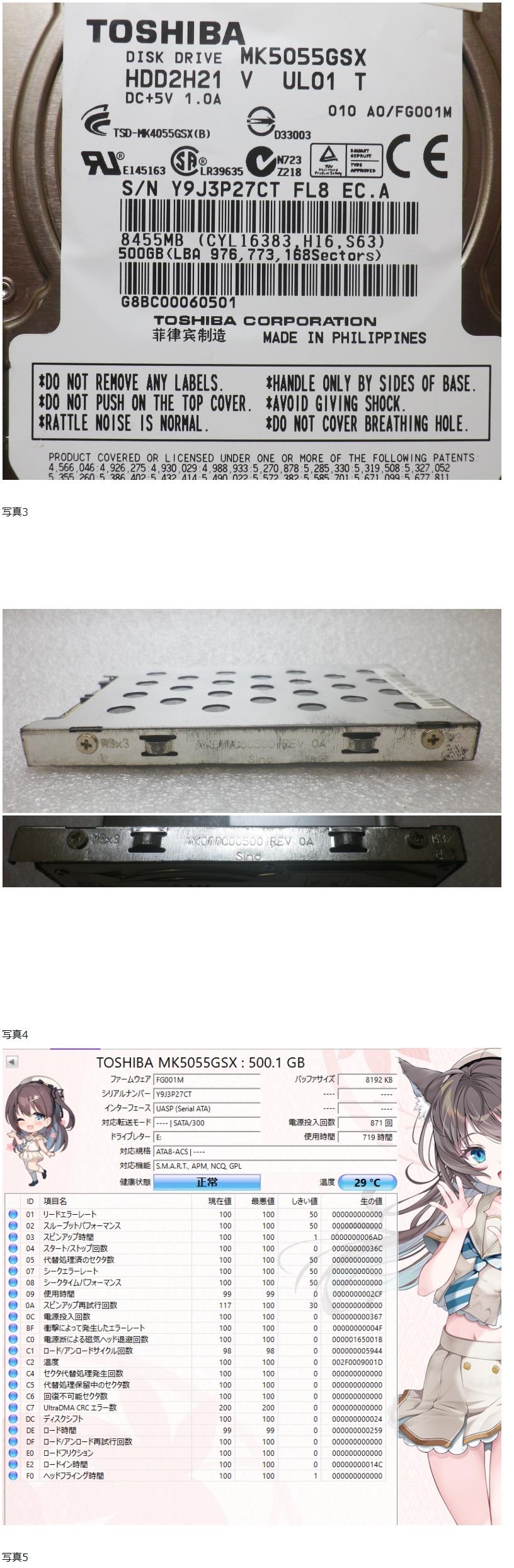 | A1-78◆TOSHIBA 東芝 MK5055GSX HDD 500GB 2.5インチ SATA 正常判定 使用719時間 |